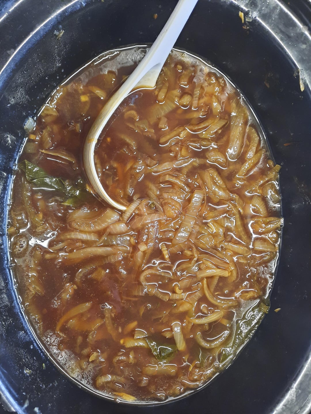 Next time I will let rhe onions go for even longer. They were soft and tasty but an extra hour or two would have got more caramelization.