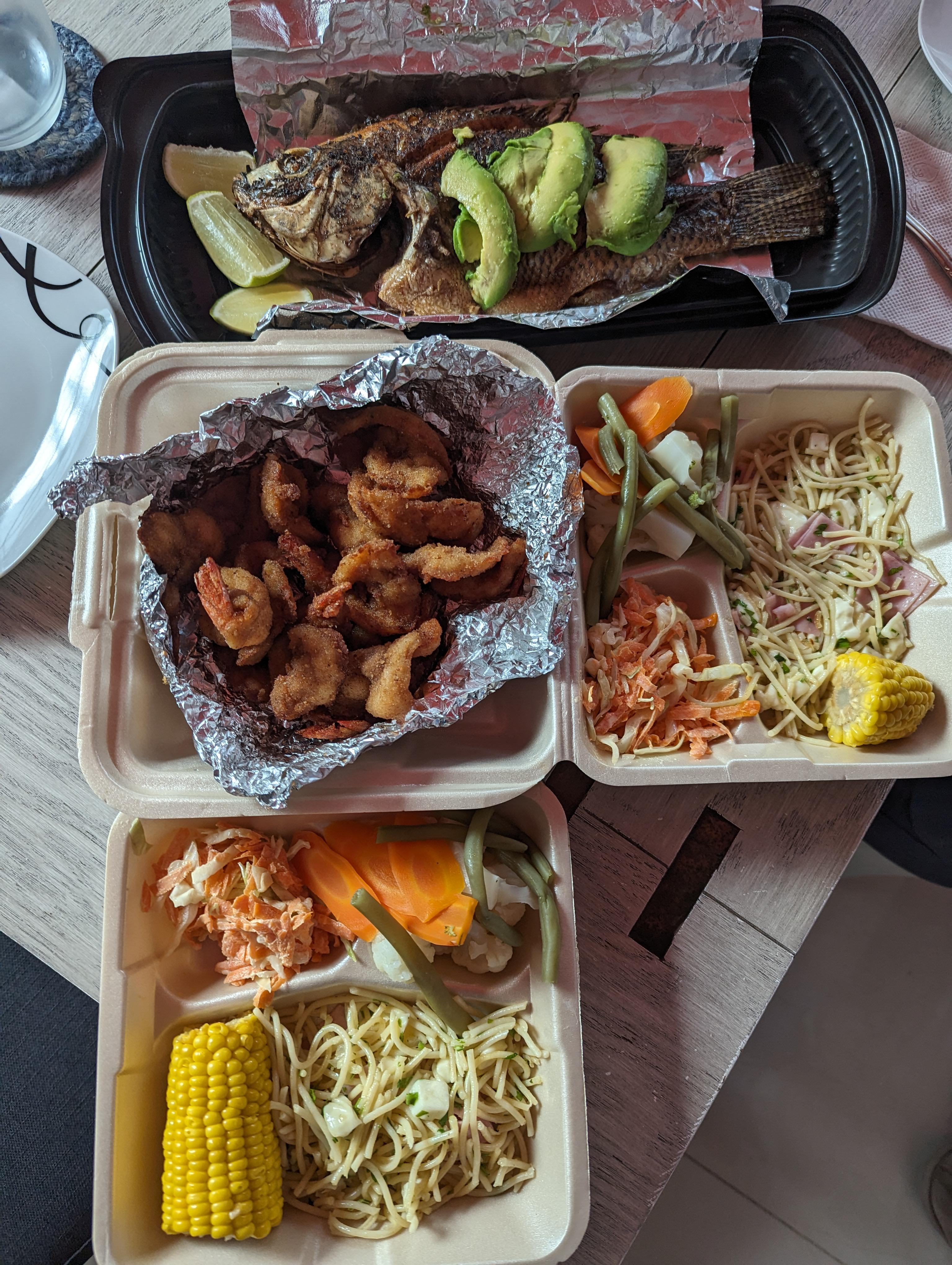Tried out a new roadside mariscos stand tonight. Mojarra frita y camarones empanizados. Not the best Mojarra we’ve had, but the camarones was so good.