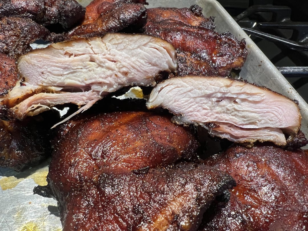 I already have a bunch of stuff I’d adjust on the pork butt and boneless skinless thighs. But for a first attempt, I’m super happy with both