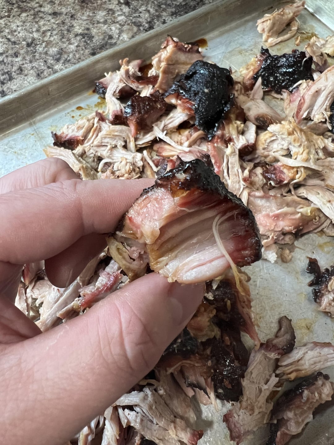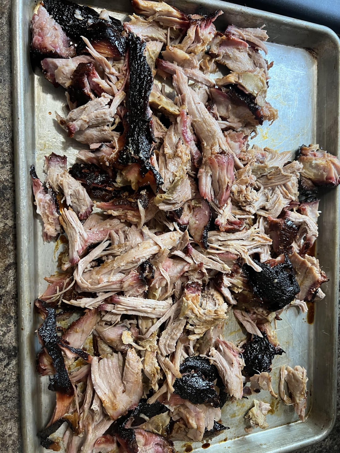 That butt had a fantastic looking bark, but (and I could be wrong) it looks like you might not have rested it long enough before you pulled it apart. Can’t be sure thou without tasting it.