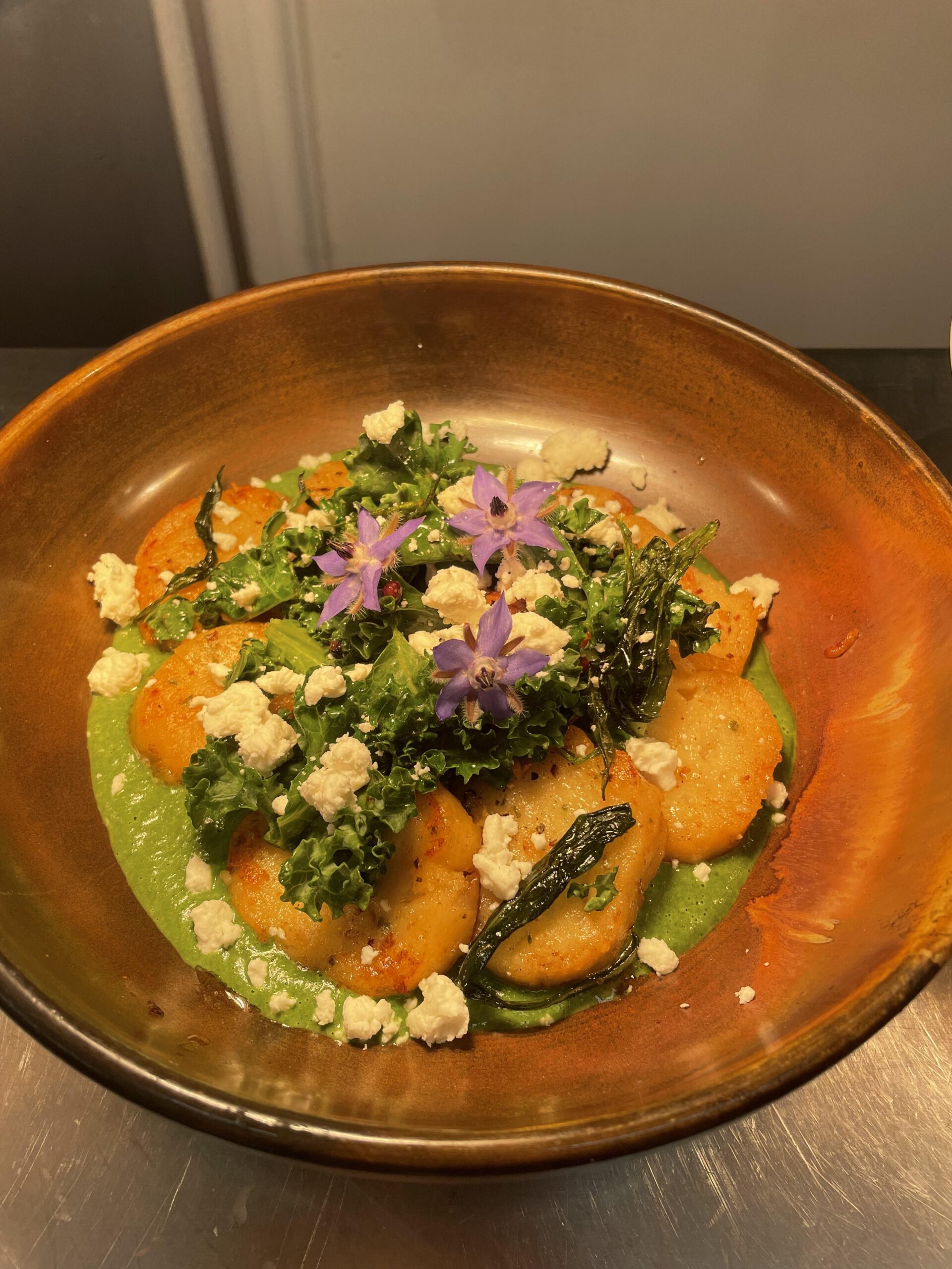 Wild garlic pan fried gnocci, spinach and bay purée, kale, samphire, goats curd, kohlrabi crisps and borage flowersby gabrieirbag Write A CommentYou must be logged in to post a comment.