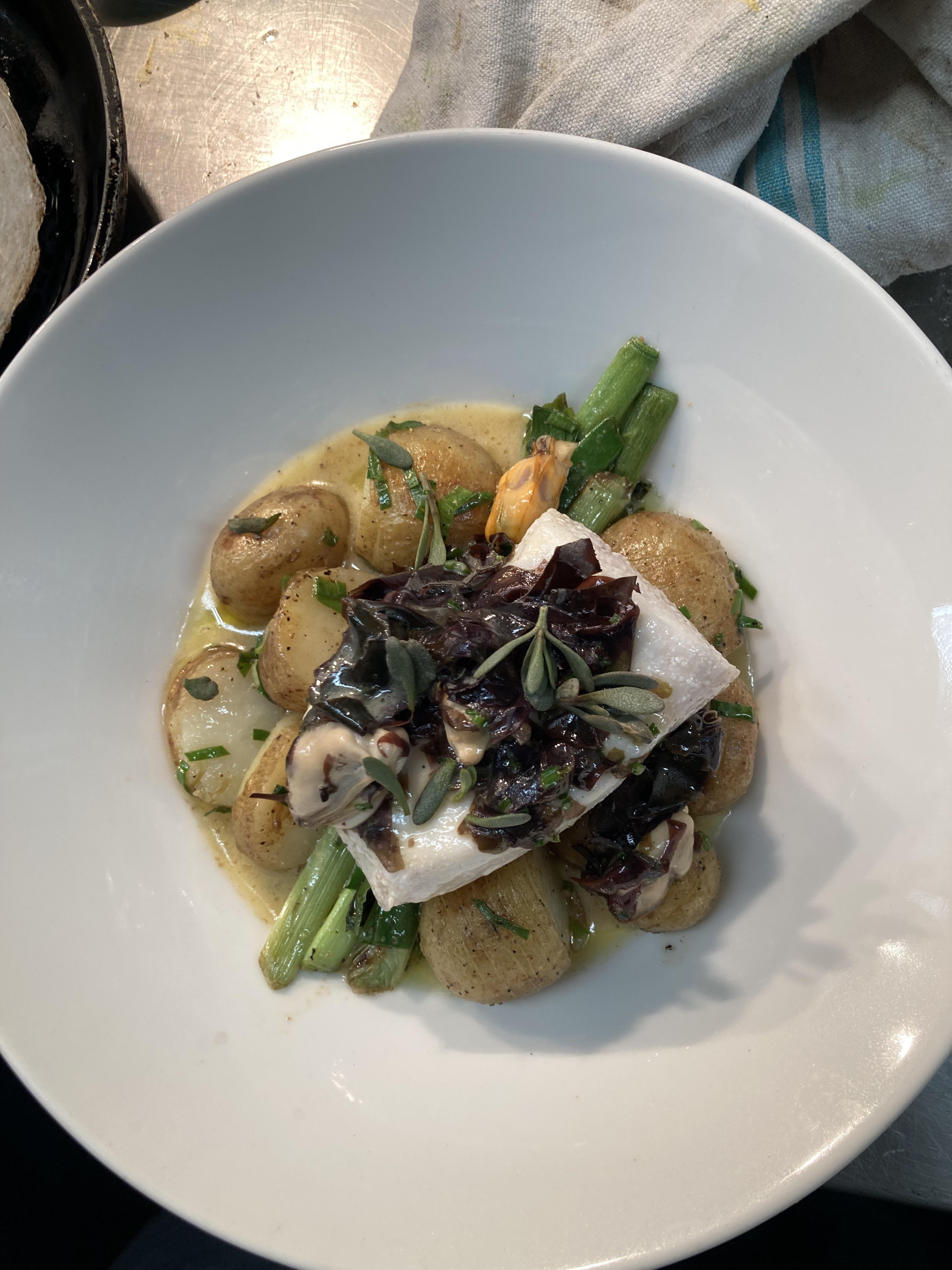 Lobster oil poached halibut, confit Charlotte potatoes, mussel and dill beurre blanc, sea leeks, wakame and sea purslane by gabrieirbag Write A CommentYou must be logged in to post a comment.