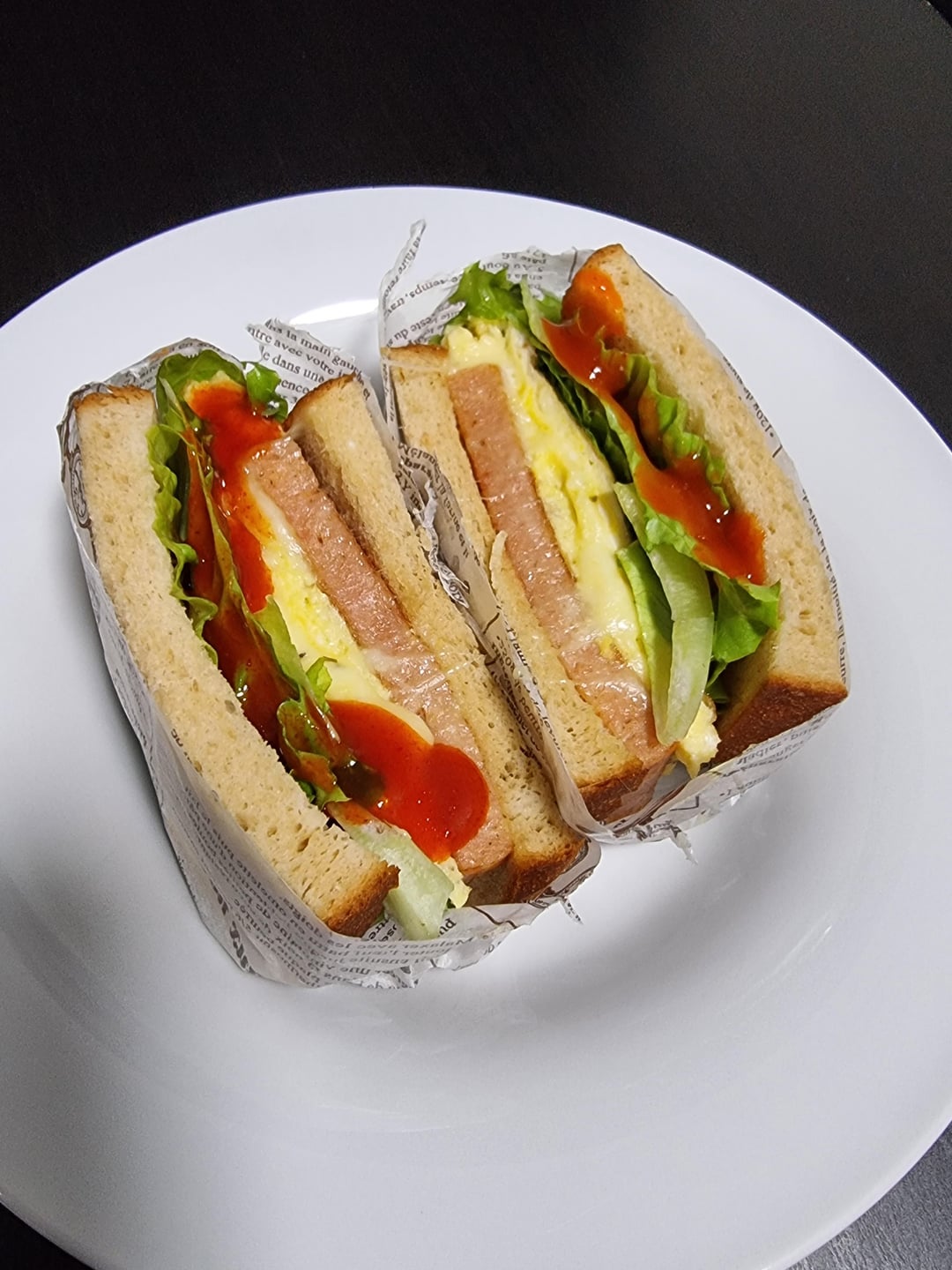 Just a simple Triple and Single spam sandwich with cheesy eggs and lettuce!