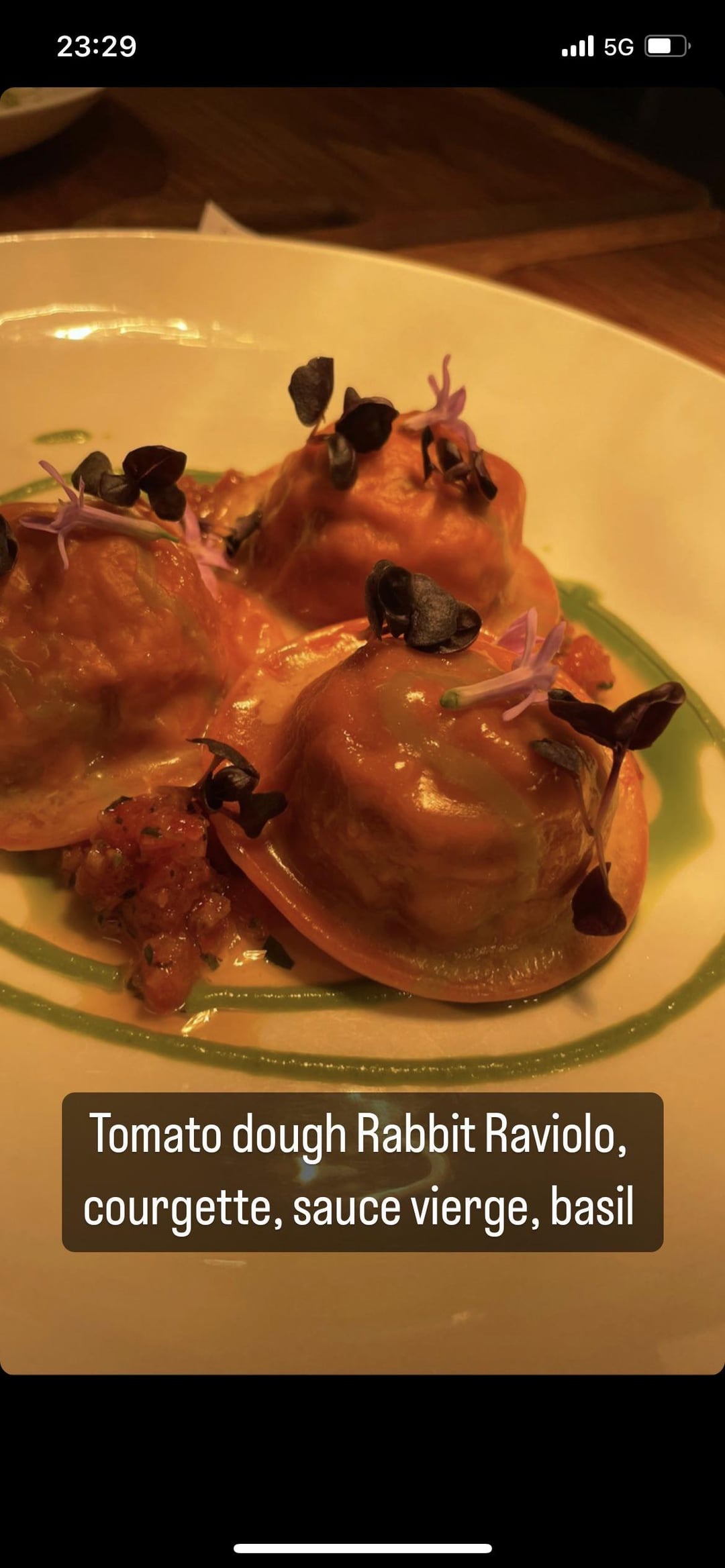 Tomato dough Rabbit Raviolo, courgette, sauce vierge, basilby EffreyJepsteinn Write A CommentYou must be logged in to post a comment.