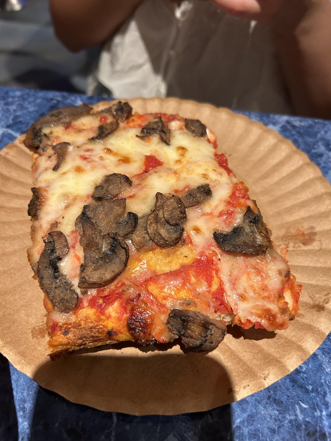 Margherita slice and mushroom Sicilian slice from Scarr’s Pizza in NYC