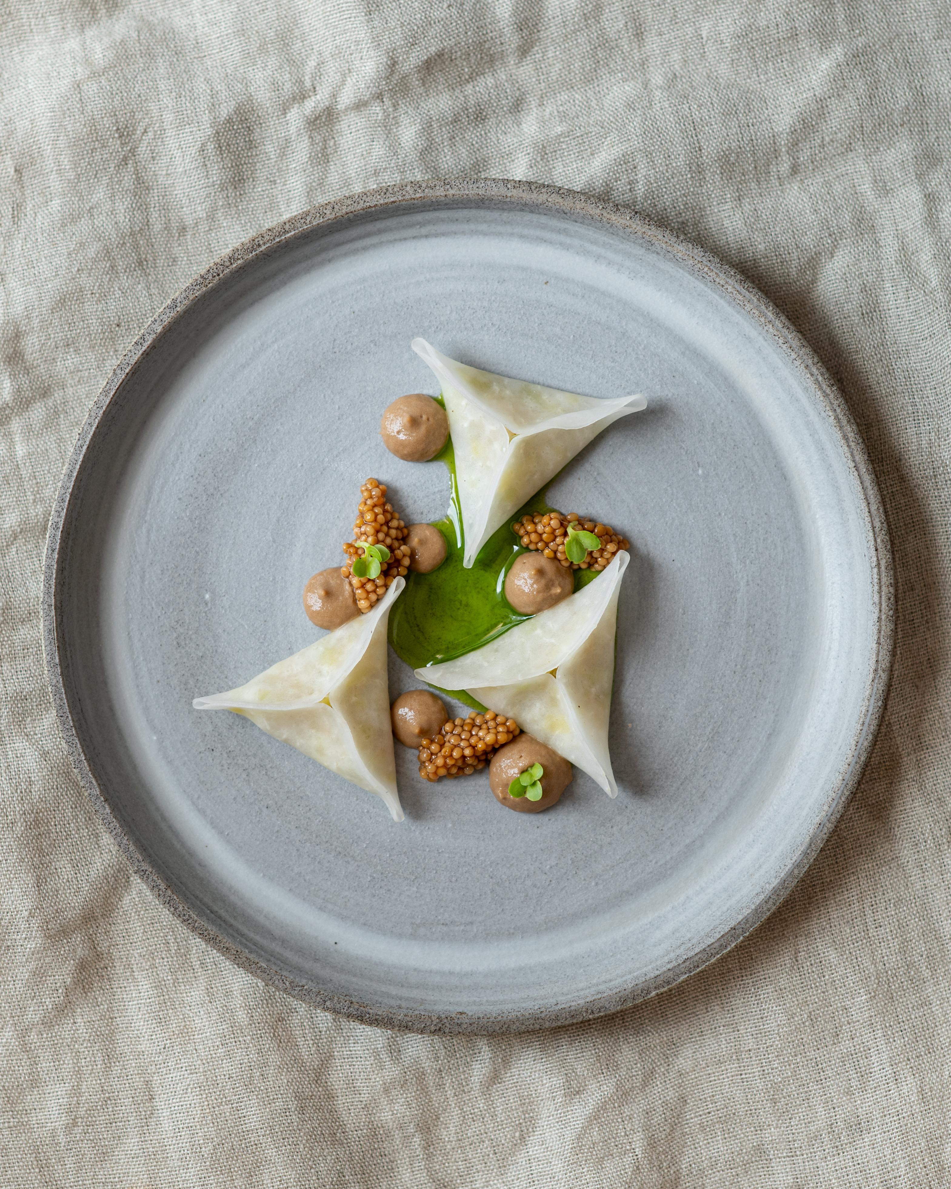 Shio Koji kohlrabi ‘dumplings’ filled with baked kohlrabi and leek | caramelized onion and coffee garum puree | pickled mustard seeds | leek oilby biekorindt 1 Comment biekorindt 2 years ago It could need some more green garnish leaves but I couldn’t find any in the supermarketsWrite A CommentYou must be logged in to post a comment.