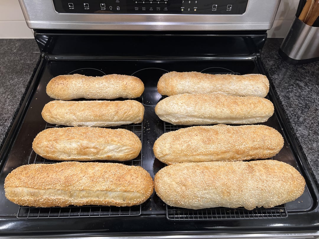 Seeded rolls from scratch baked on a baking steel. Sliced ribeye with melted cooper sharp. Well worth the effort for fresh baked bread.