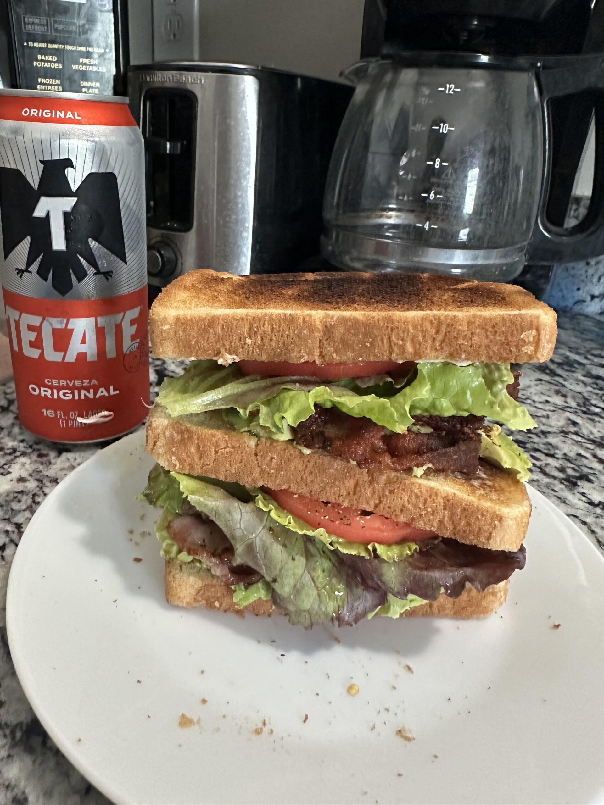 One up from yesterday. I added avocado. Tastes even better with McCormicks lime mayo, still need to get better bread :/