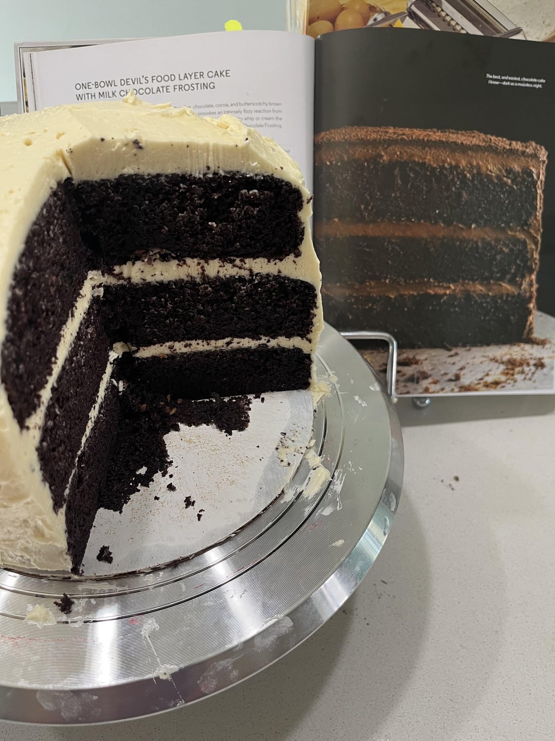 I’m not a big fan of chocolate cake, especially with chocolate frosting, but mom wanted this for her birthday (and then only took 1/4 of it home so everyone is getting treats from me this week) but I will absolutely be making this cake again with the milk chocolate frosting because this cake was the best chocolate cake I’ve had. And I feel like I’m figuring out the marshmallow buttercream texture.