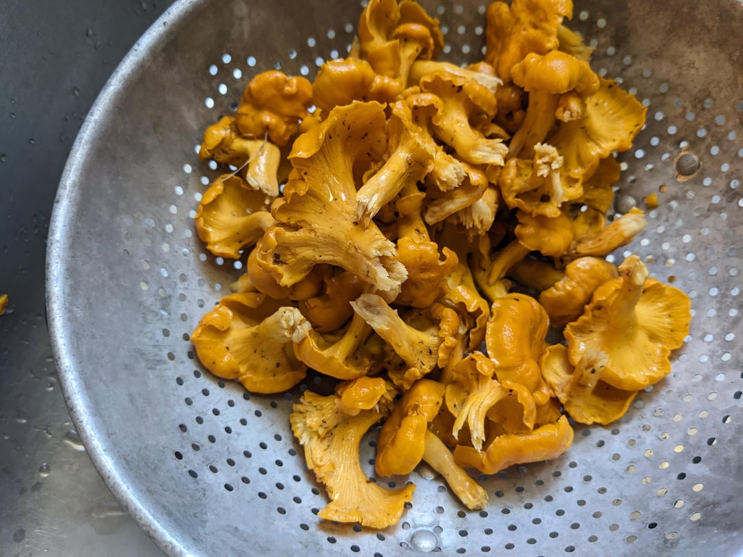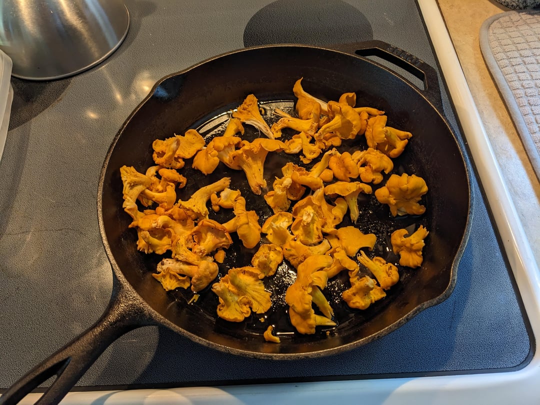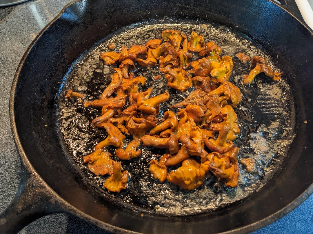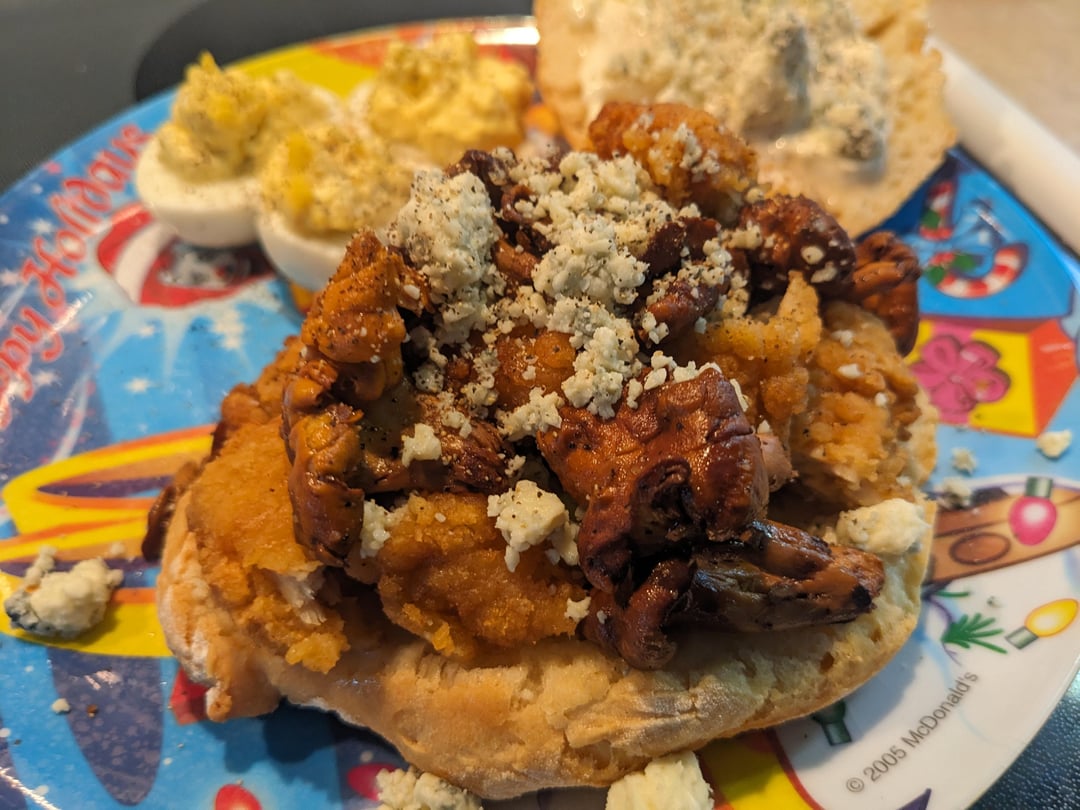I made the bread today, harvested the mushrooms and cooked them two days ago… The chicken is Just Bare brand tenders I cooked in the air fryer and chopped up. I buttered the bread added the chicken and mushrooms and topped with blue cheese crumbles. Oh and I had some deviled eggs on the side.