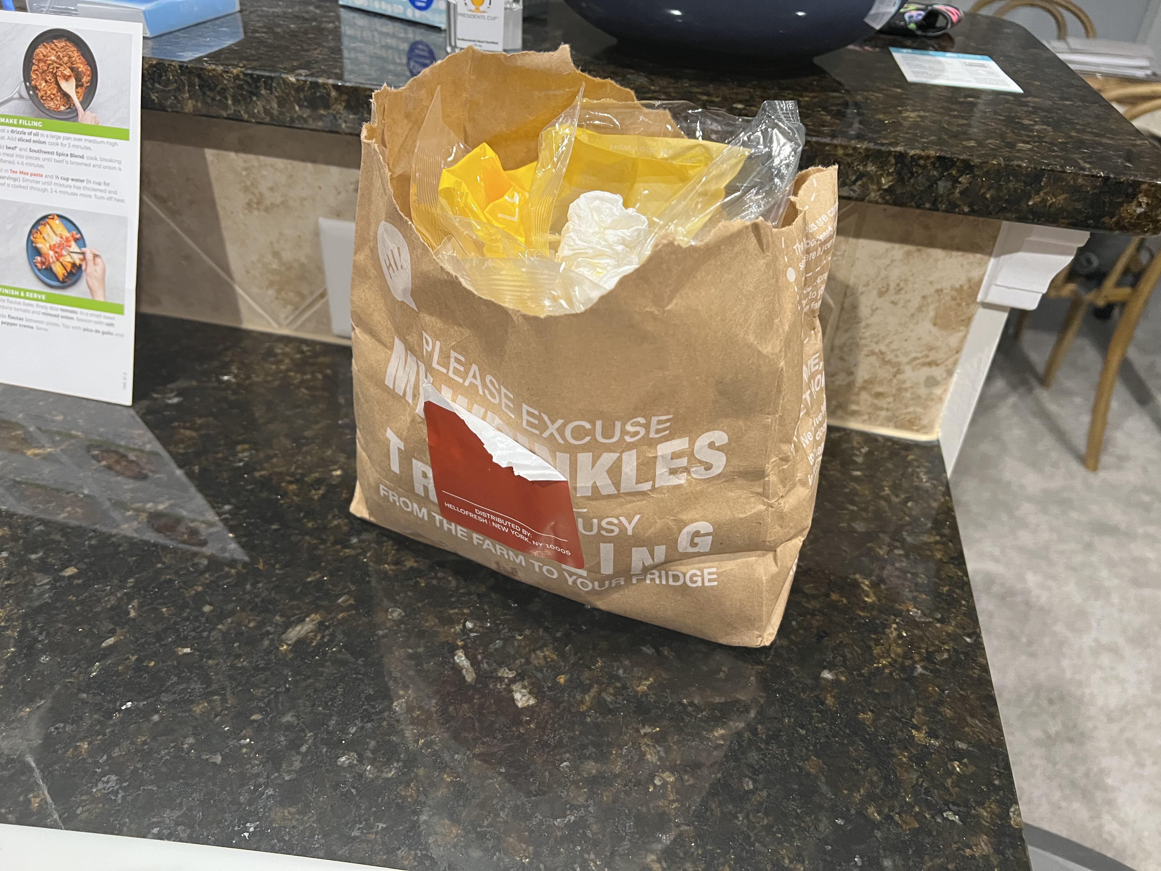 No, when I cook things are everywhere. It’s straight up mess. Wrappers and containers everywhere.