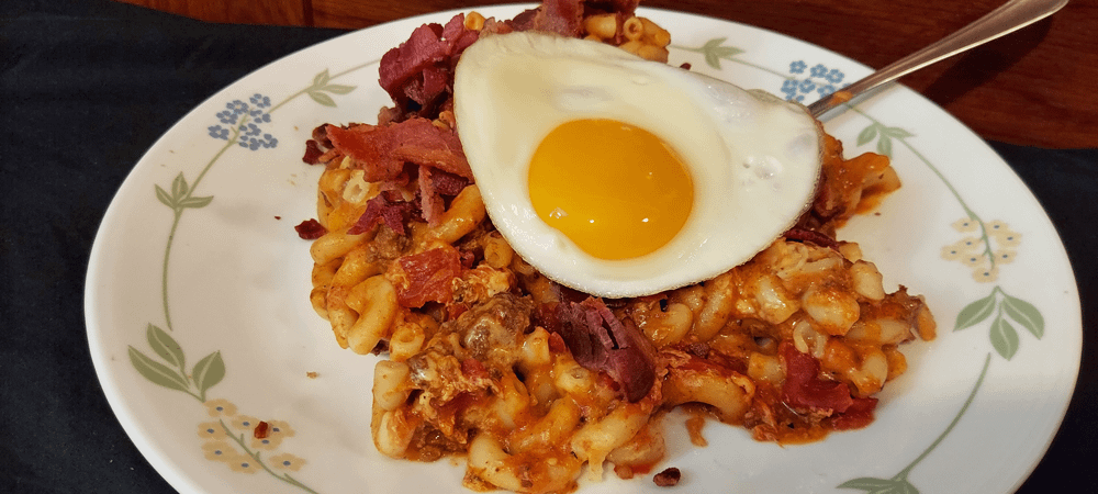 Chili bacon mac and cheese with egg.by toneman238 Write A CommentYou must be logged in to post a comment.