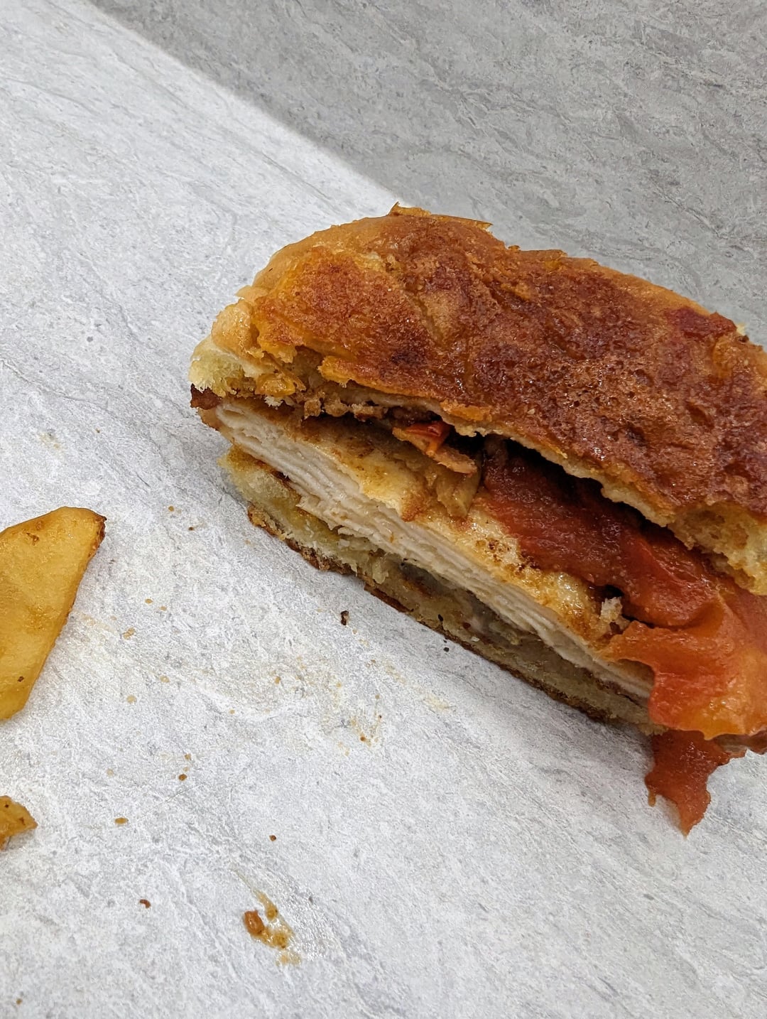 Low grocery level resulted in grilled burger bun, with baked chicken, Gouda, and fried apples and tomato. Really could’ve used onion. by cloudlessjoe Write A CommentYou must be logged in to post a comment.