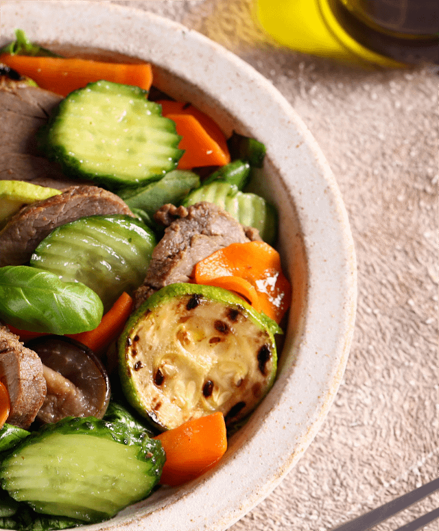 Now a mouthwatering hot salad with roasted vegetables is complete! Intermingling the flavors of hot salad with roasted vegetables, each bite is a treat for the taste buds. The aroma of the roasted vegetables and the freshness of the salad weave a delicious picture in your mouth. Come and experience the wonderful combination of hot salad and roasted vegetables together and let the smokeless grill pan bring you a feast for your taste buds!