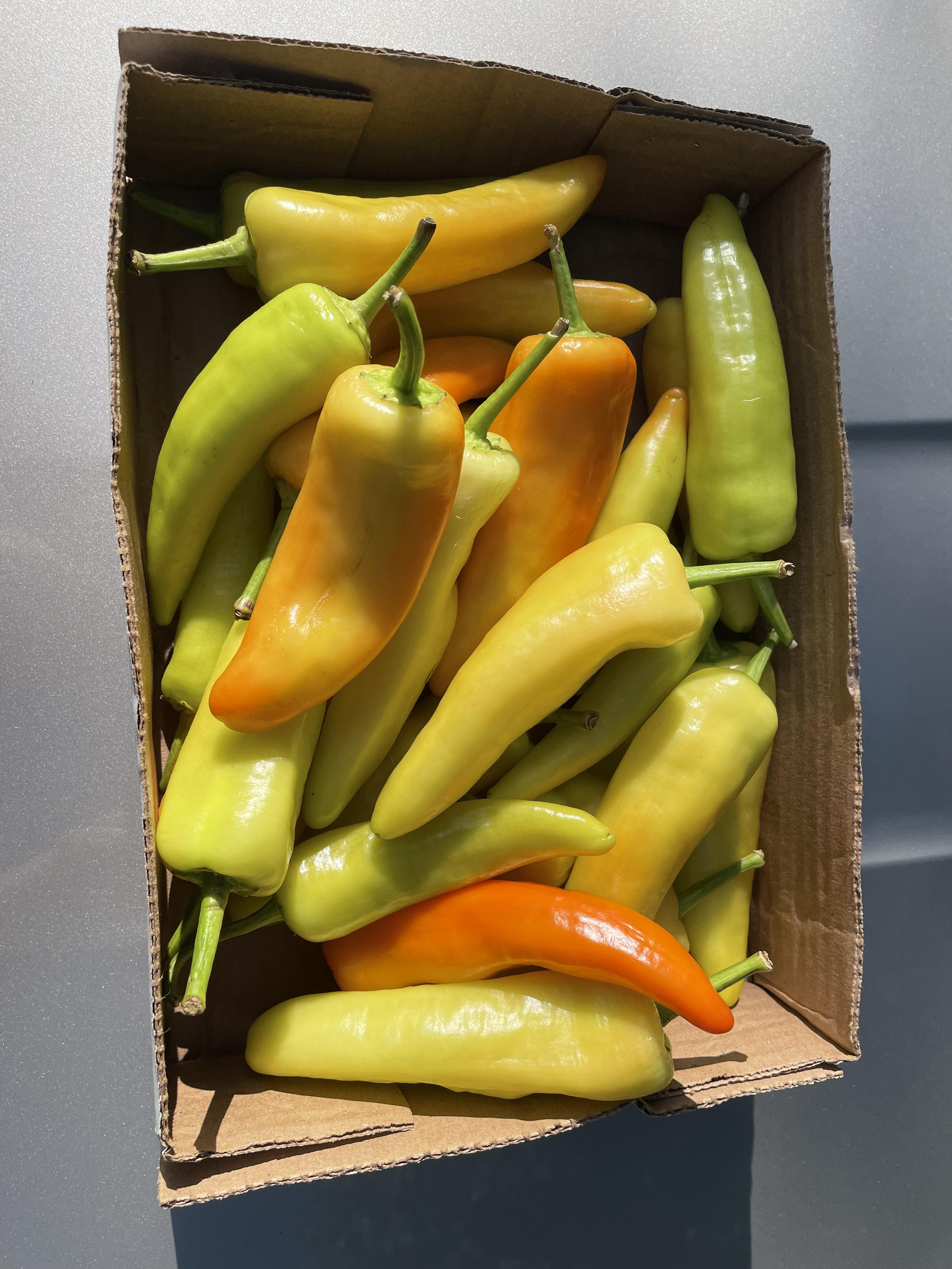 Someone mentioned that they could be fresnos or jalapeños and they’re totally right. They also could be a cross of a banana pepper that was cultivated over time near spicier pepper plants.