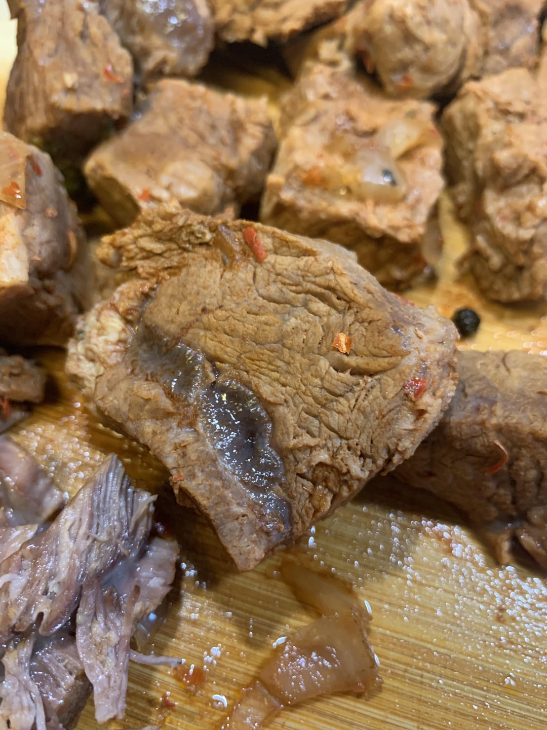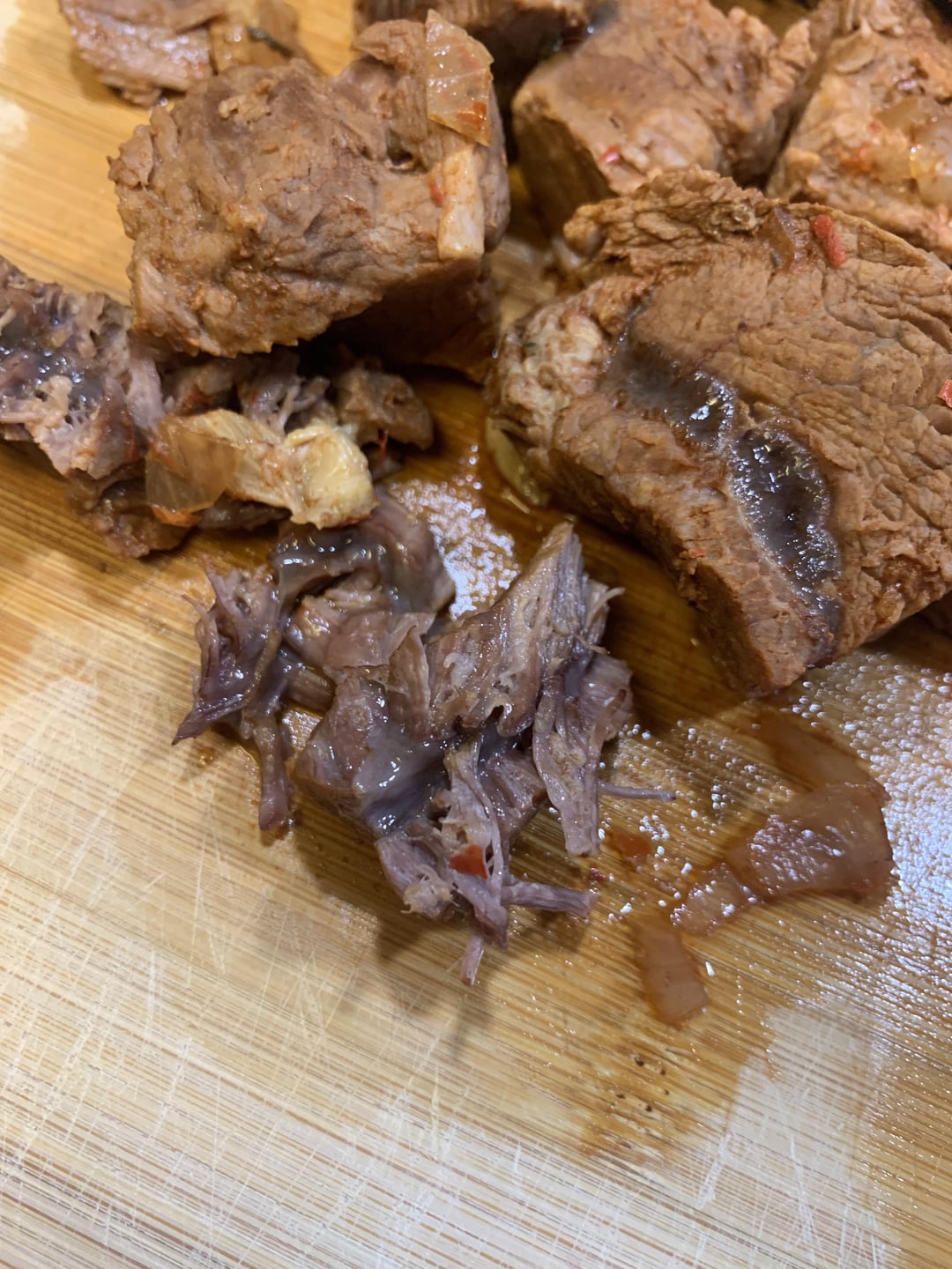 Ok so I made birria (for quesabirria tacos) in my crock pot tonight. Recipe is linked below for reference. I’m inexperienced with stew meat and slowcooking so I’m not sure what’s normal.