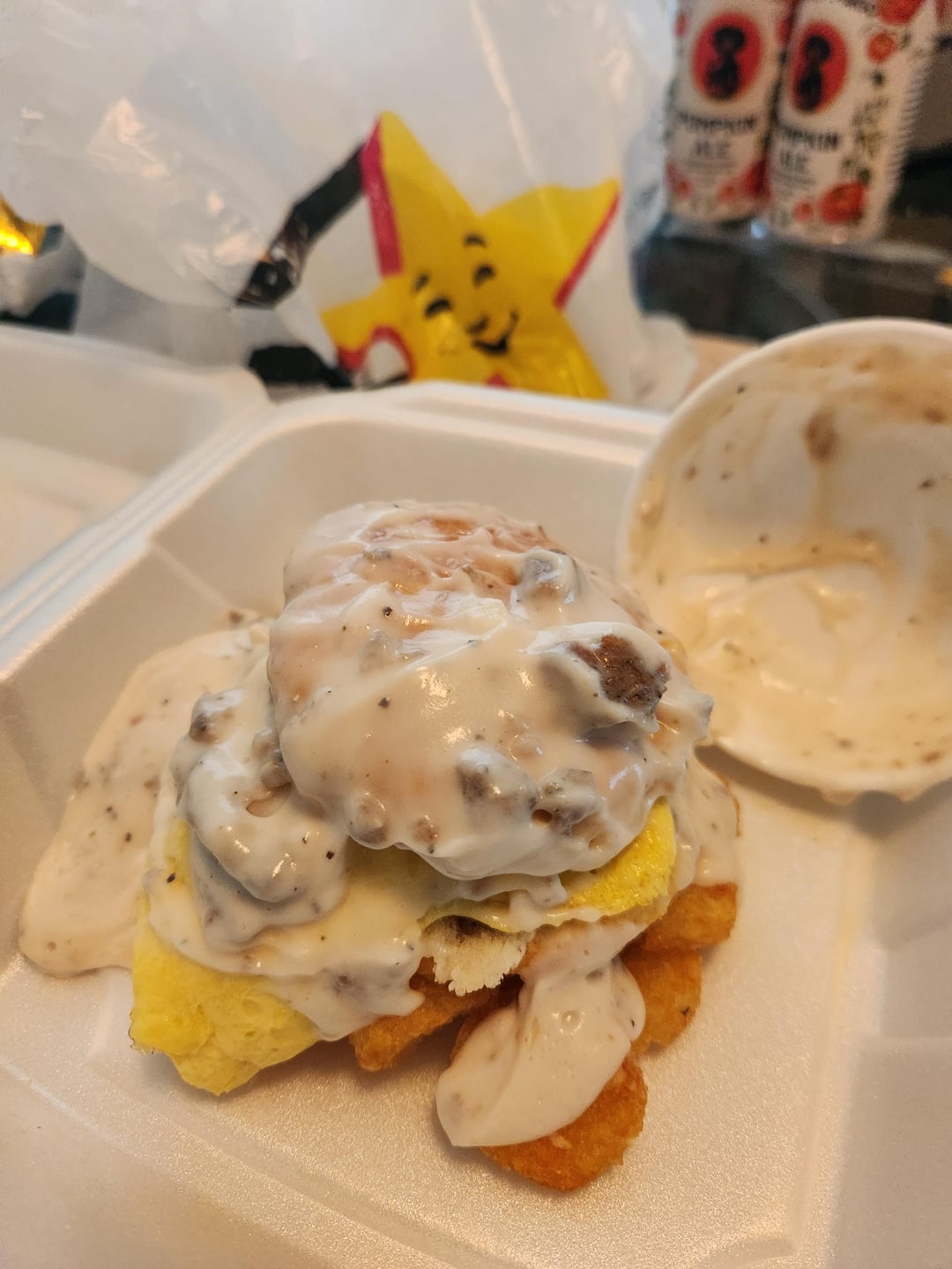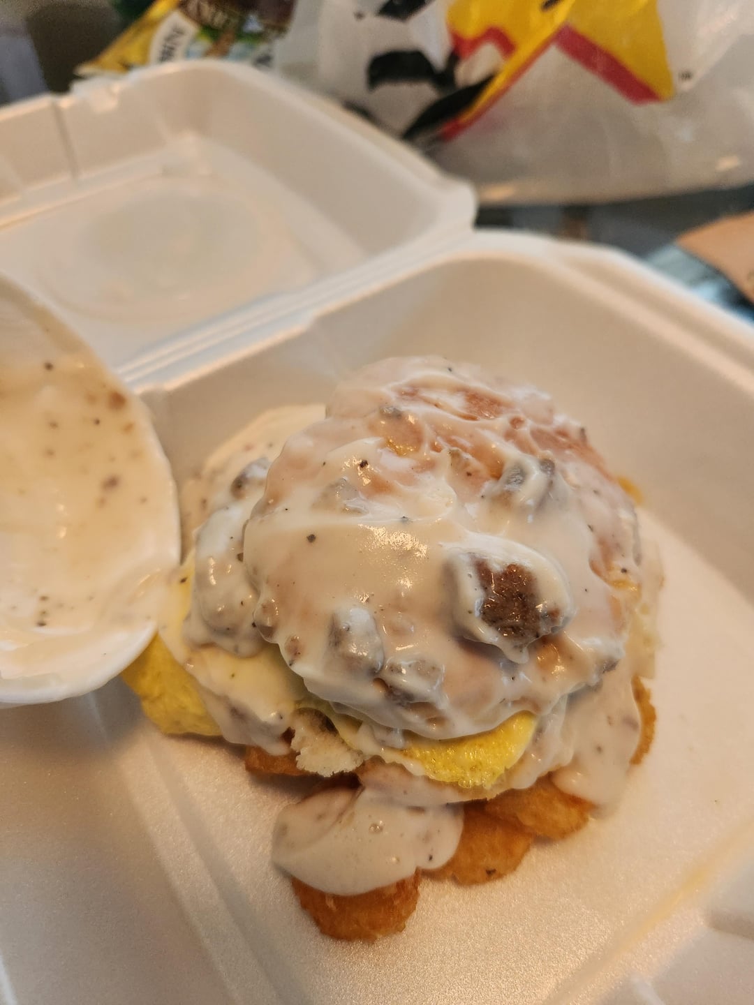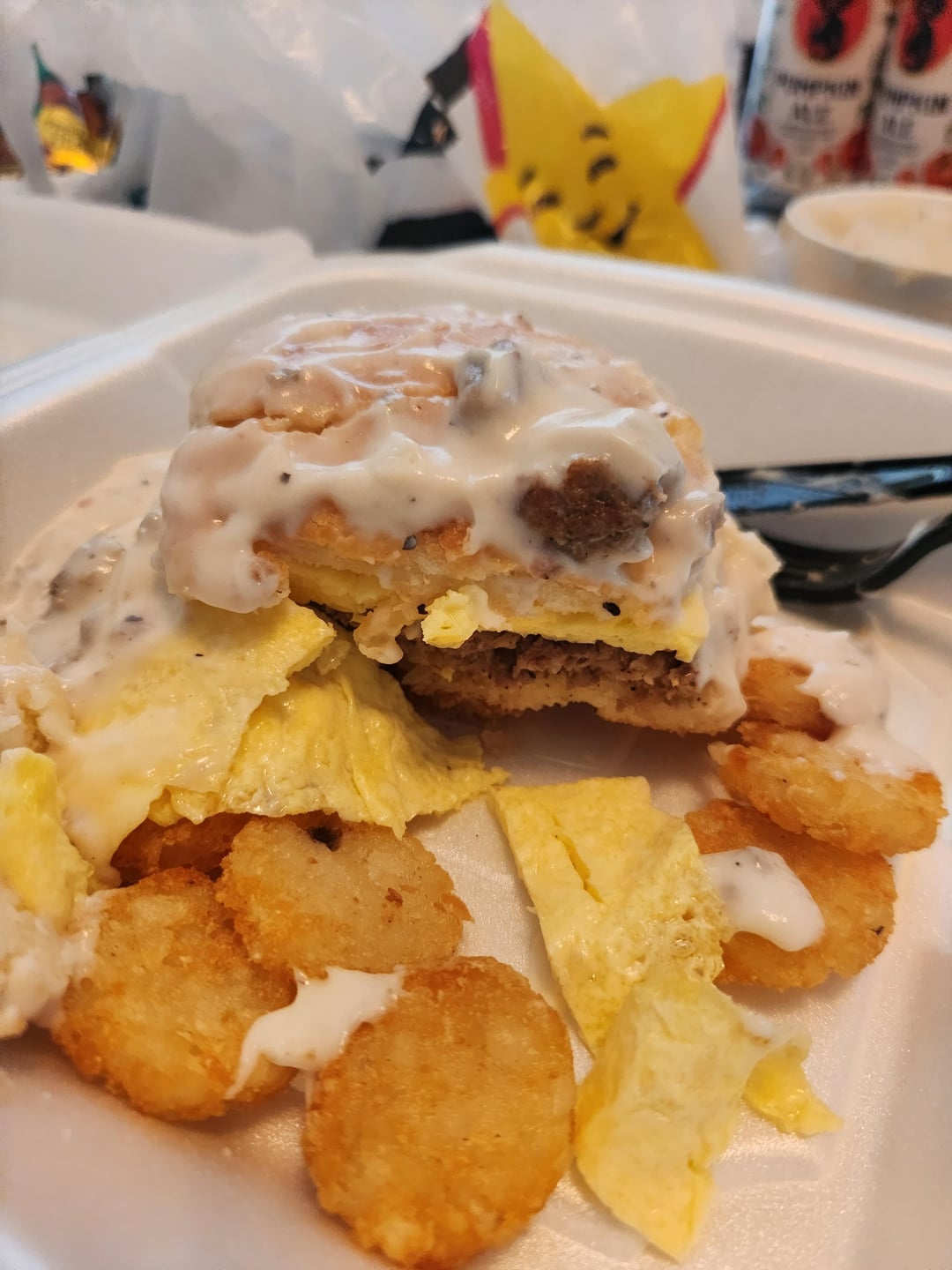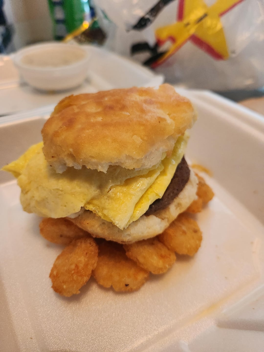 So back in the day when they had the āmonster biscuitsā egg cheese ham bacon sausage, I would also get harsh rounds and a side of gravy. Iād add the hash rounds to the biscuit and then dunk it in the gravy. It was disgustingly delicious. I once got a chicken biscuit plus everything else and added the chicken to the monster biscuit, it was too much.