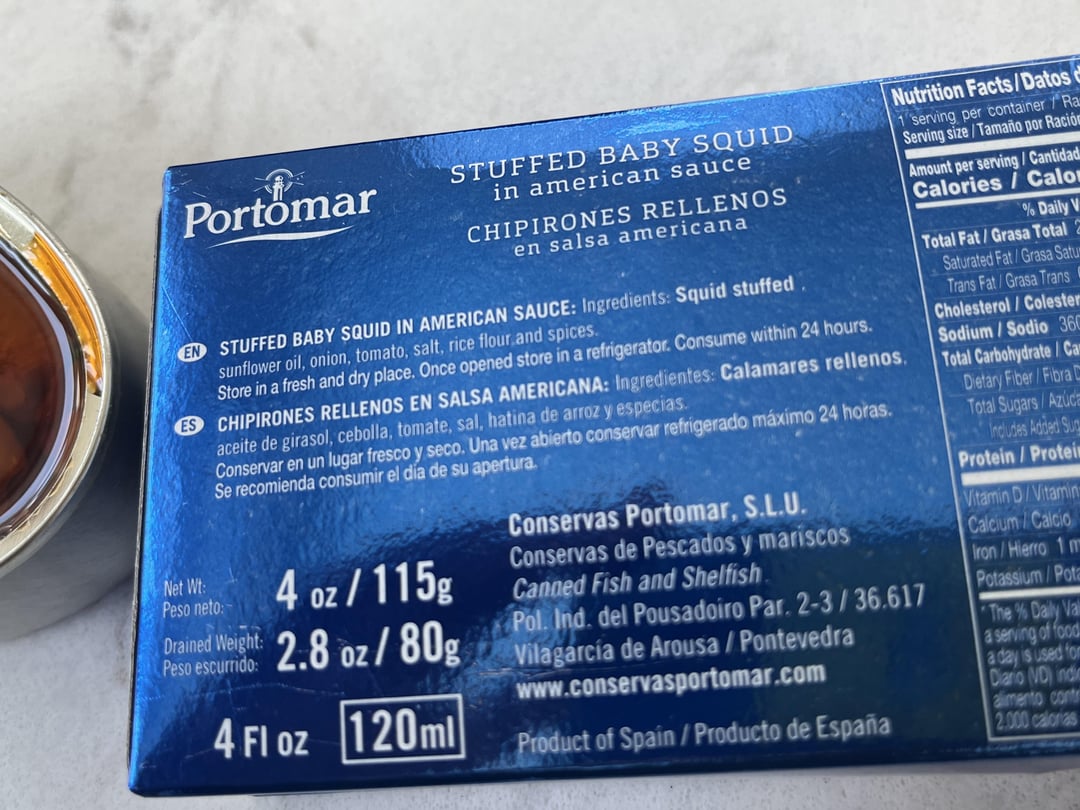 I have to admit that since picking this tin up, a long time ago from Rainbow Tomatoes Garden [here](https://rainbowtomatoesgarden.com/index.php/product/portomar-stuffed-baby-squid-in-american-sauce/), I’ve been a bit intimidated by it. I’ve had squid in the form of broiled, braised, and fried calarmari, and as sushi, and always enjoyed it, but something about a tin of baby squid challenged me. Well I’m glad that I cracked it open today…