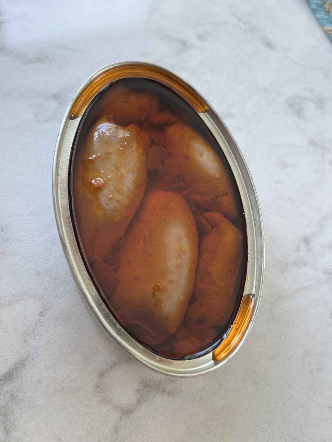 **Flavor**: I’d never heard of American sauce, and I’m not sure if that’s really a pervasive thing, but it seemed pretty similar to some other tinned fish I’ve had in galician sauce, which I’d also not previously heard of. Anyhow, the flavor is great – a bit of tomato, a bit of onion, a bit of umami, the slightest bit of spice. I’m not sure I could tell you what the squid tasted like itself – the sauce is pervasive – pleasant, but it drives the flavor profile.