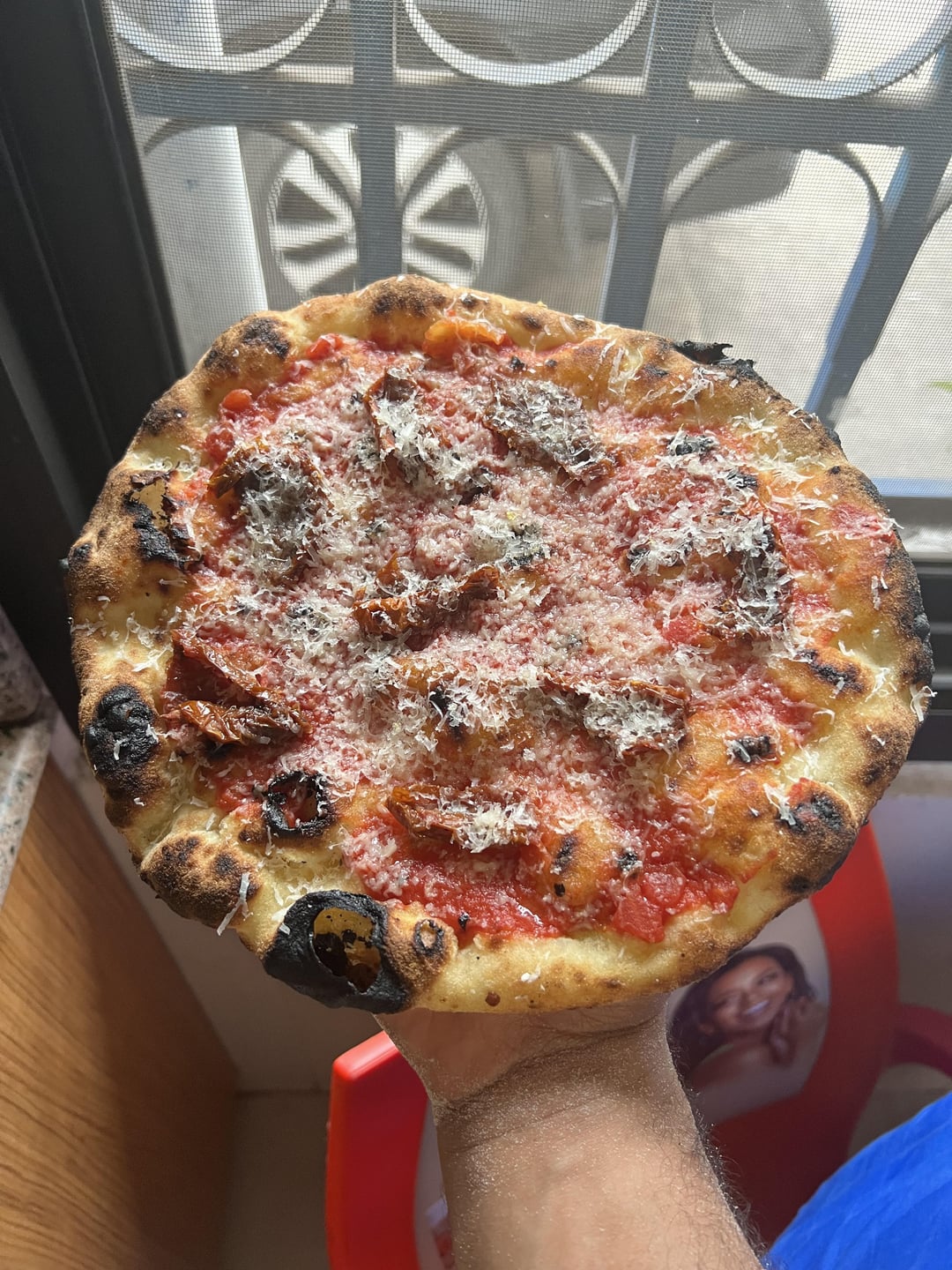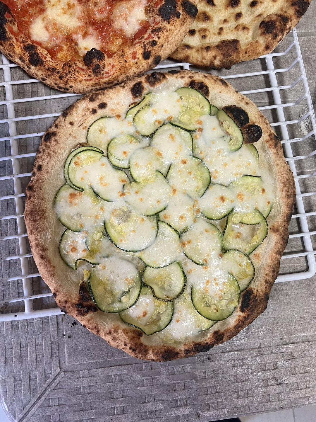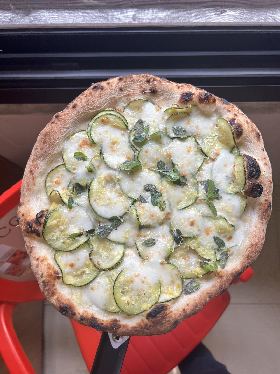 70% hydration. 2.5% salt. 36h ct 2h rtLast one was precooked with olive oil then topped with sun dried tomatoes and tomato sauce and recooked like Roman style. by CaptnCorrupt 1 Comment aPinchOfThyme 2 years ago Beautiful! The way you placed the zucchini is visually so appealing! 🙂 I should give this a try one day.Write A CommentYou must be logged in to post a comment.