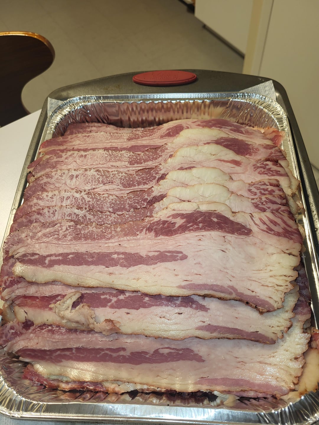 Beef bacon cured for 3 weeks and then smoke at 225° for 3 hours and it is AMAZING!!!! This was my first try so im super happy. by thequirkyquacker 1 Comment sly1523 2 years ago Brisket?Write A CommentYou must be logged in to post a comment.