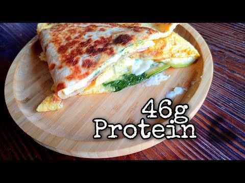 Ingredients: Cheese – 3 slices Tortilla bread – 1 per serving Spinach – as per your preference Eggs – 3 pieces Milk – 50 ml Chilli flake – as per your preference