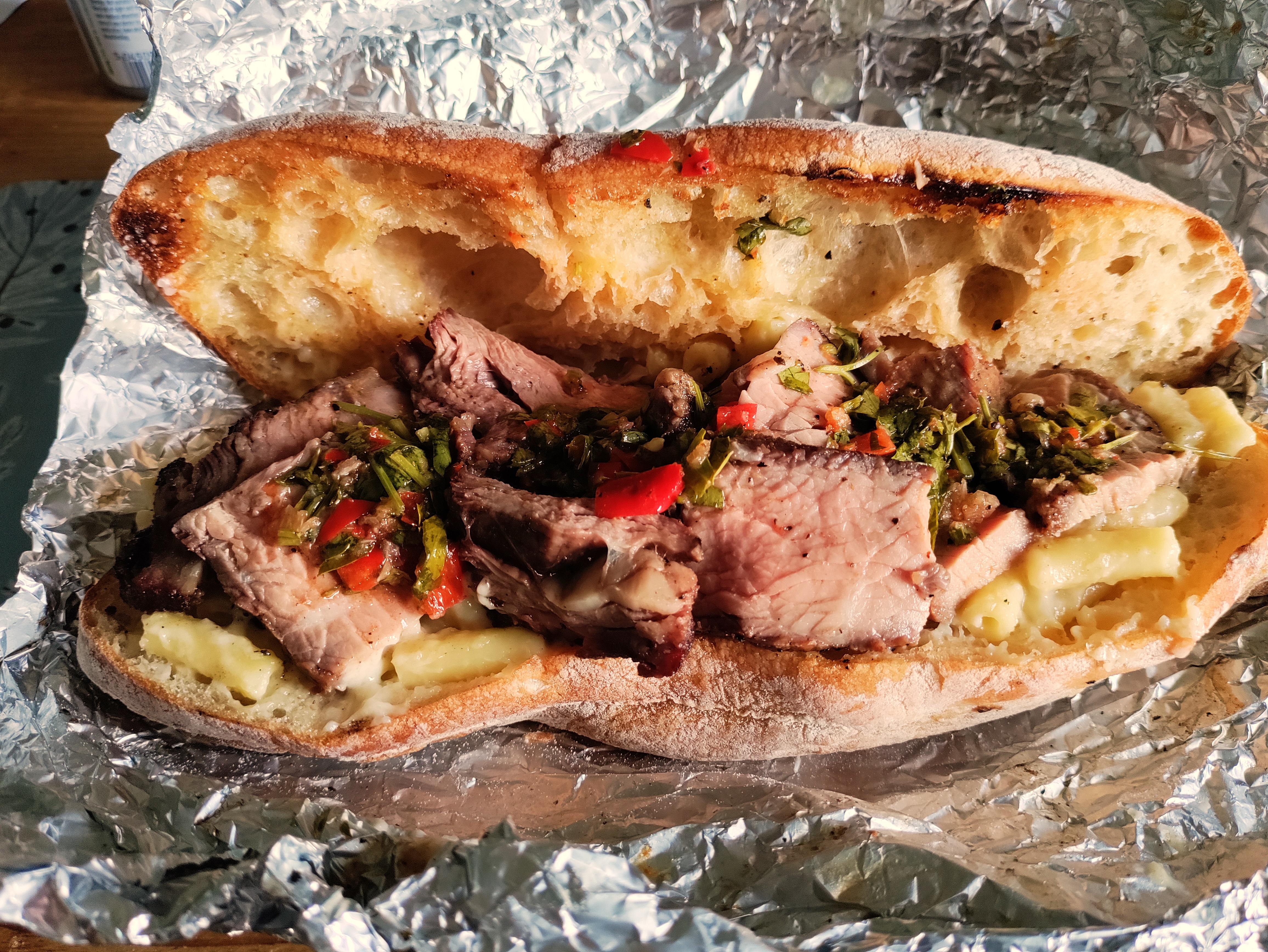 With smoked mac and cheese and chimmichuri on a toasted ciabatta by Unnegative Write A CommentYou must be logged in to post a comment.