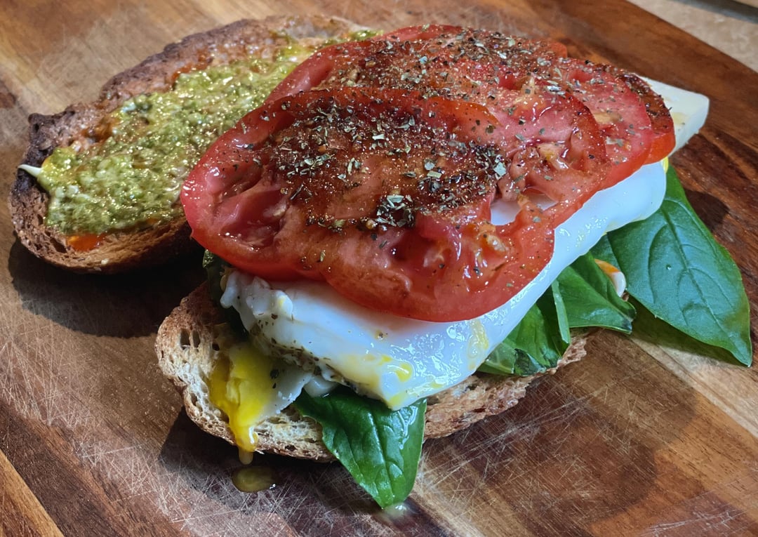 TheJamBerge 2 years ago Sandwich: – Toasted bread – Pesto / Sriracha – Fresh basil – Aged Cheddar with Mikes Hot Honey drizzle – Fried egg – Fresh tomato with balsamic glaze drizzle – Pesto / Sriracha – Toasted breadSeasoning’s: S&P, Italian herbs.Tomatoes and basil fresh from my garden.Enjoy 🙂