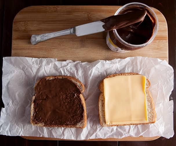 Grab a piece of that classic wonder bread or plain white sandwich bread, chuck it in the toaster for a bit, spread Nutella all over it. Then, grab a slice of those thin slices of cheese that you’d get from your local supermarket and put it on.