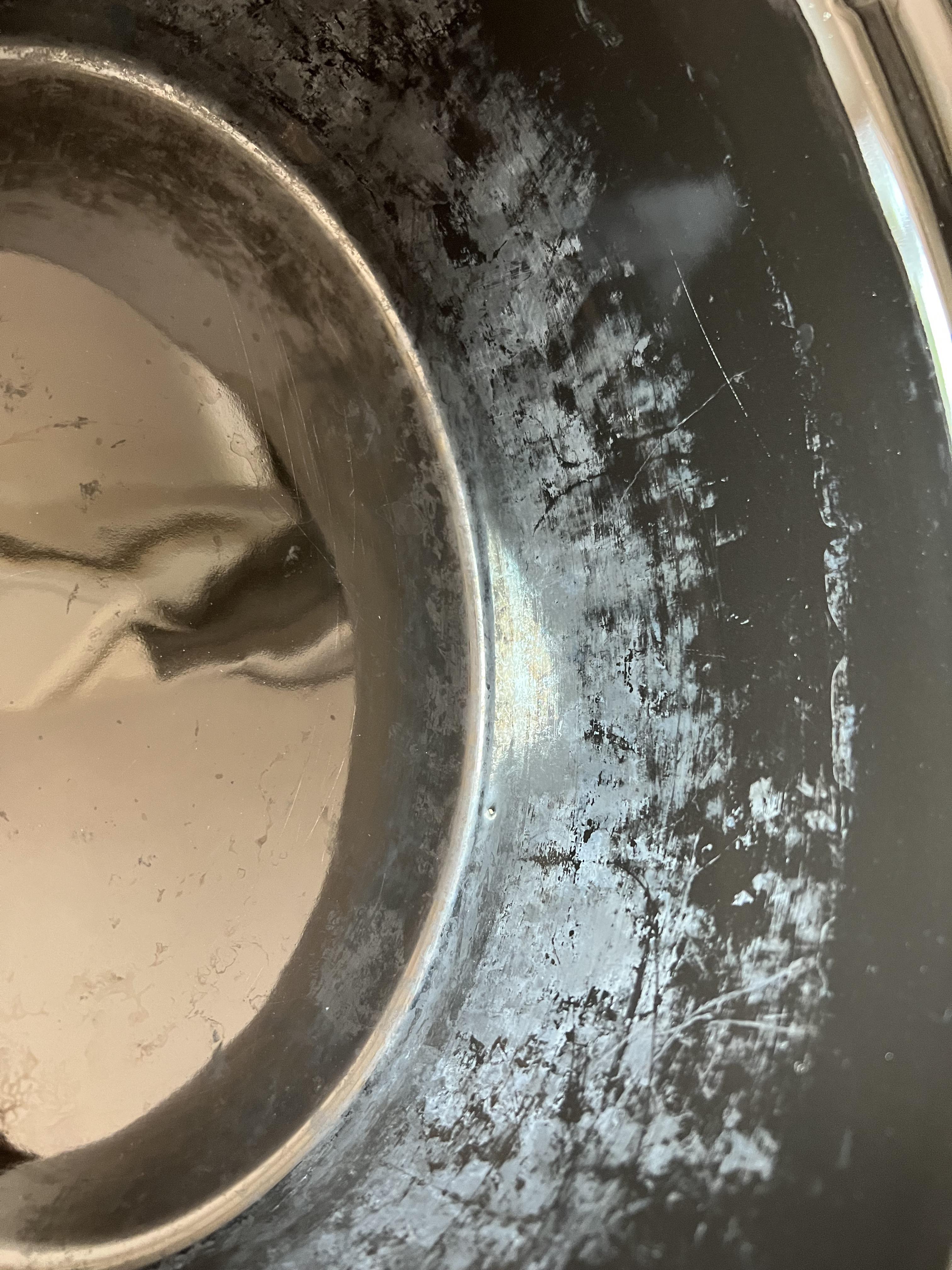 Uuuhhh you should clean more thoroughly like scrub it with a brush or scotch brite cleaning sponge or pad and it’ll be fine just scrub it when you wash it..