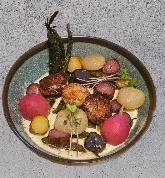 Hello, I’m a home chef trying to improve my plating game. I know this is a little chaotic, so any criticism and advice would be really helpful for me! Apologies on the uneven cook on the scallops, I’d never cooked them before. Thanks 🙂