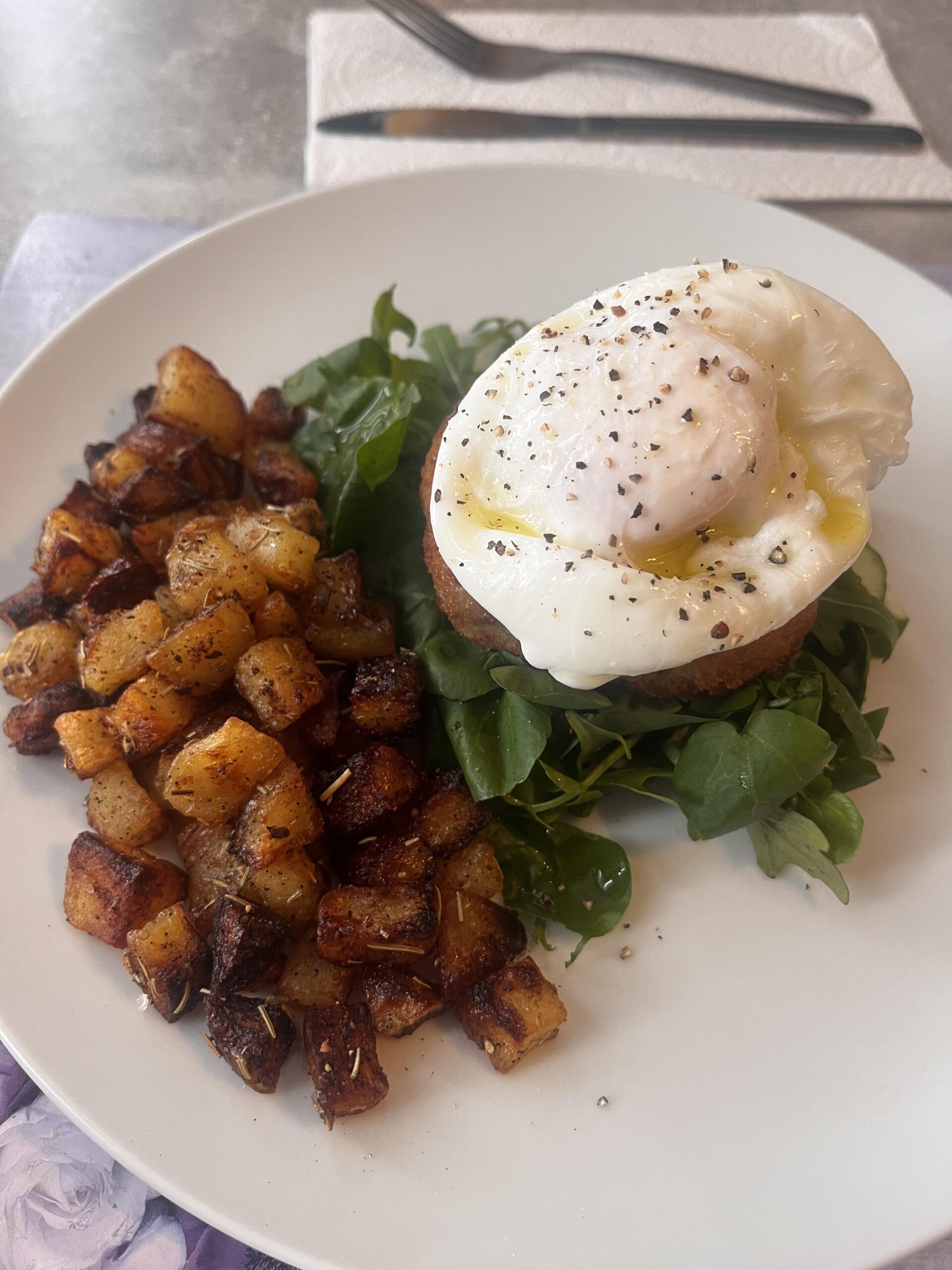 Fish cake with salad, crispy potatoes and (of course) a poached egg and truffle oil by rose-the-anna Write A CommentYou must be logged in to post a comment.