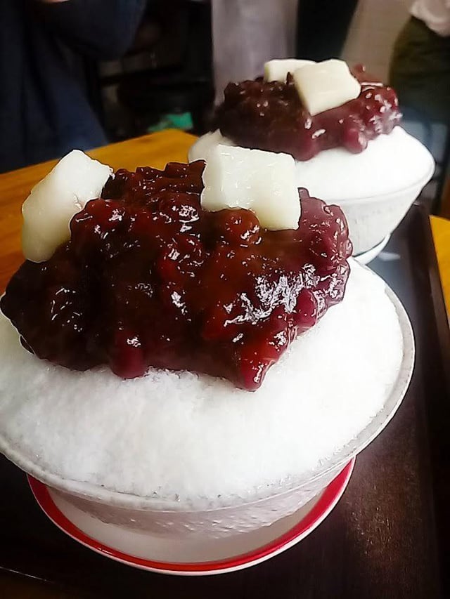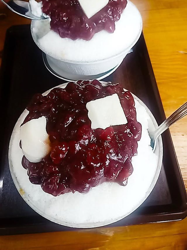 Just red bean paste, underside misu garu, milk, condensed milk and sharpen ice. And chapssal-tteok.