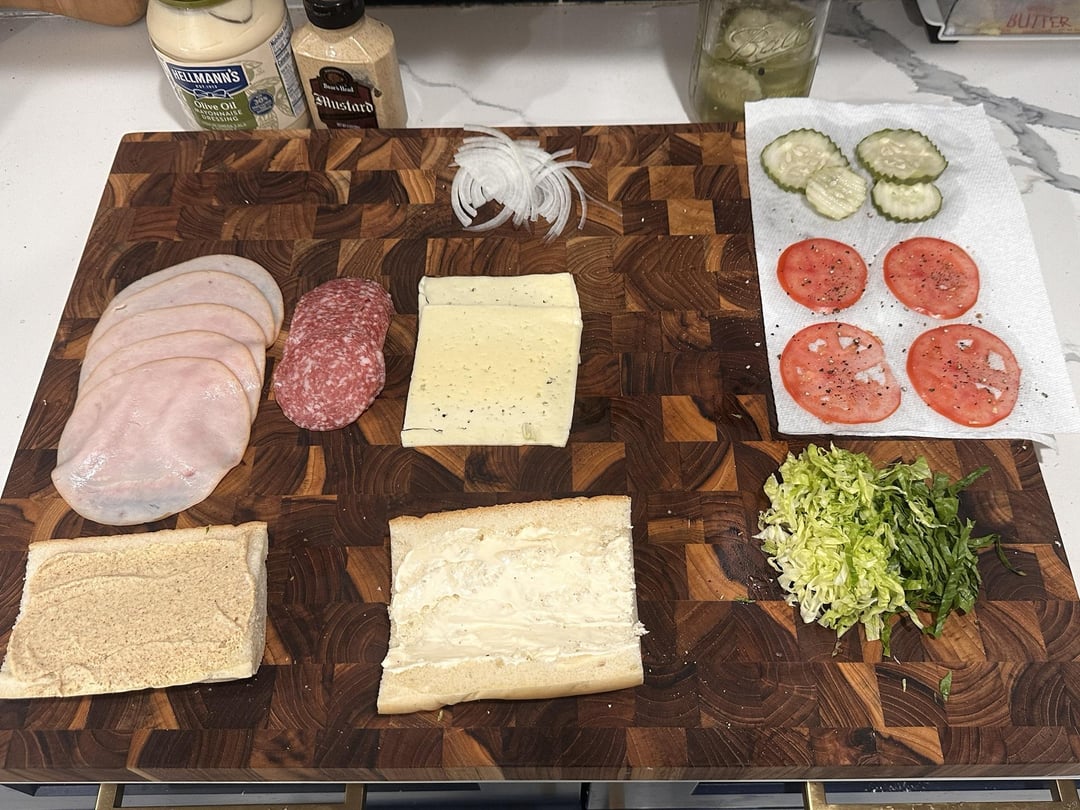 salami, turkey and havarti w/ mayo, “deli” mustard (its got horseradish in it), onion, homemade pickle, onion, tomato and lettuce. by icutfarts 2 Comments garythepitbull 2 years ago Beauty! LegitimateAbalone267 2 years ago Oh, I could go for one of those right now. That looks fantastic.Write A CommentYou must be logged in to post a comment.