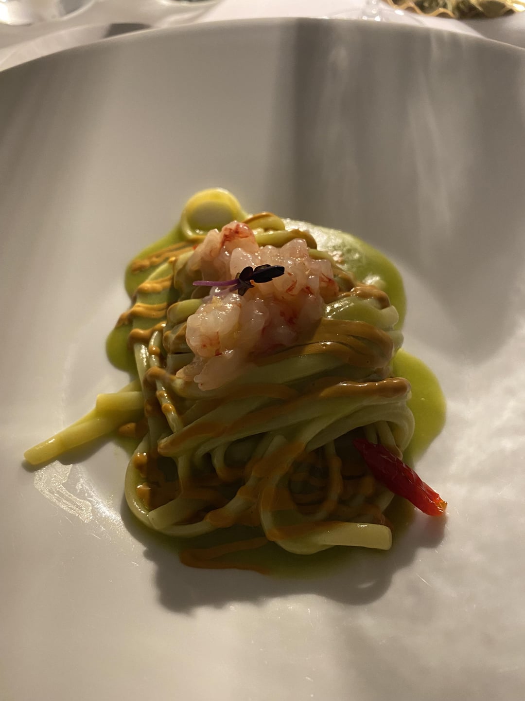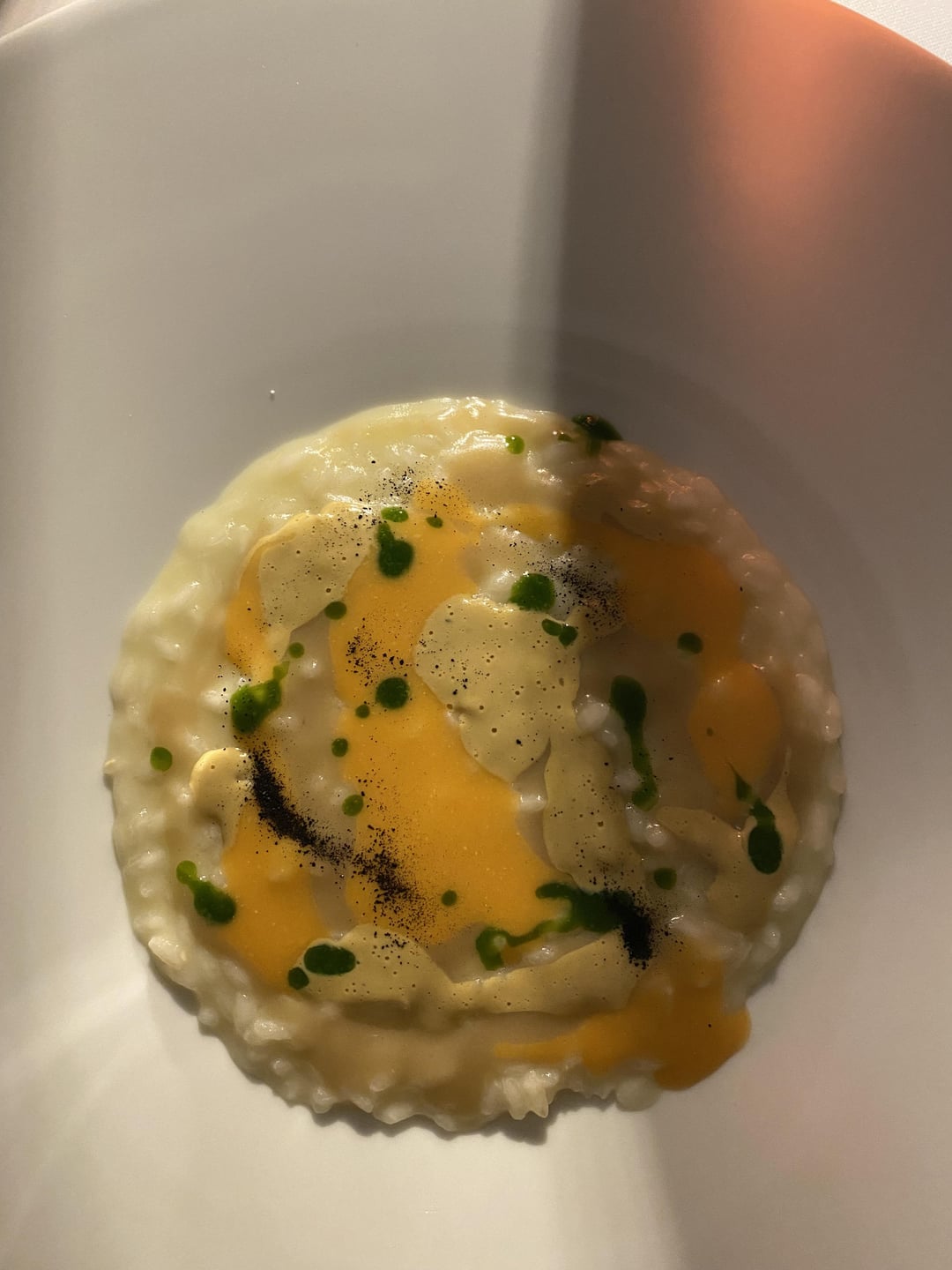 6. Risotto with parsley oil, and shell fish emulsions.