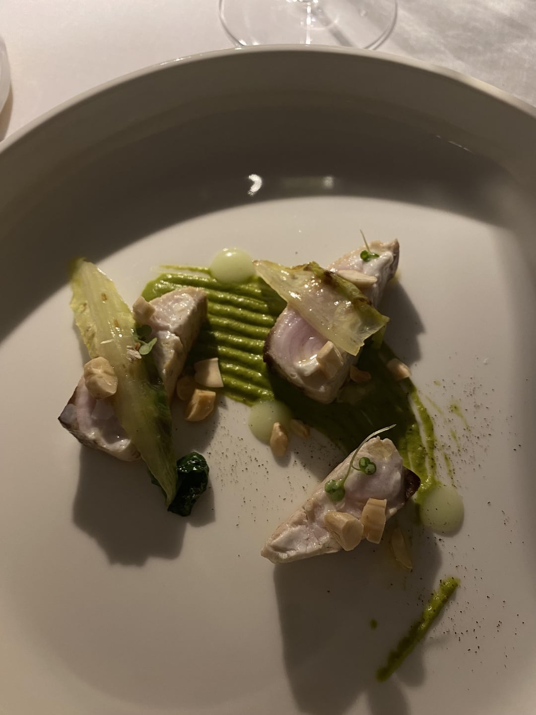 5. Sword fish with arugula sauce and peanuts.