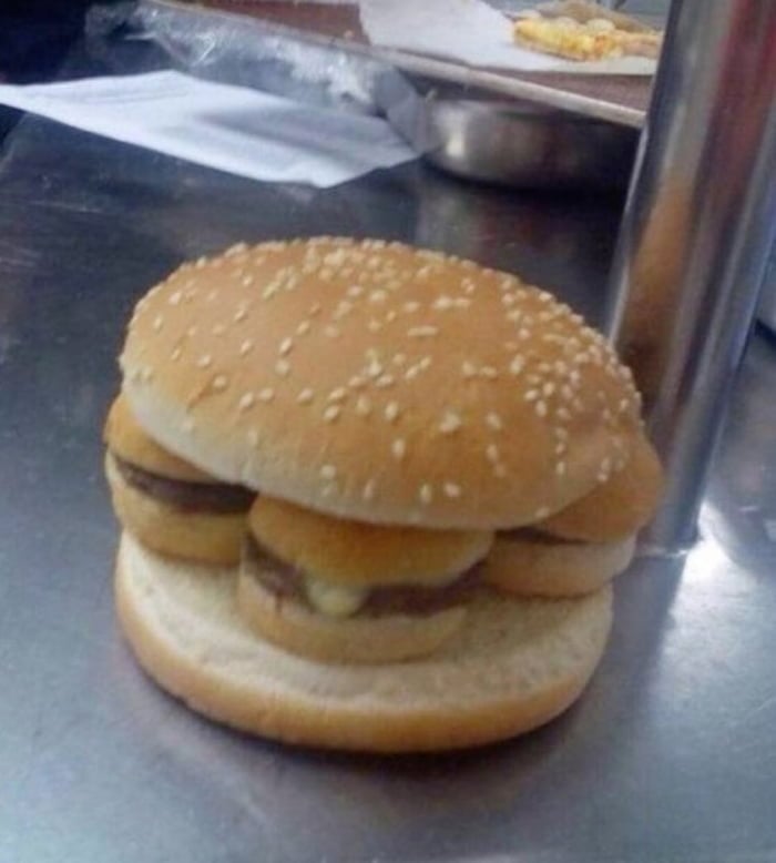 Where carb lovers uniteby acrossunbutton387 3 Comments Megaminimaxi 2 years ago The Burger Burger you_can_not_see_me 2 years ago not enough meat to bread ratio Sonofarson 2 years ago I would have to run 12 miles to burn off those carbs, and I’m too lazy to run, pass.Write A CommentYou must be logged in to post a comment.