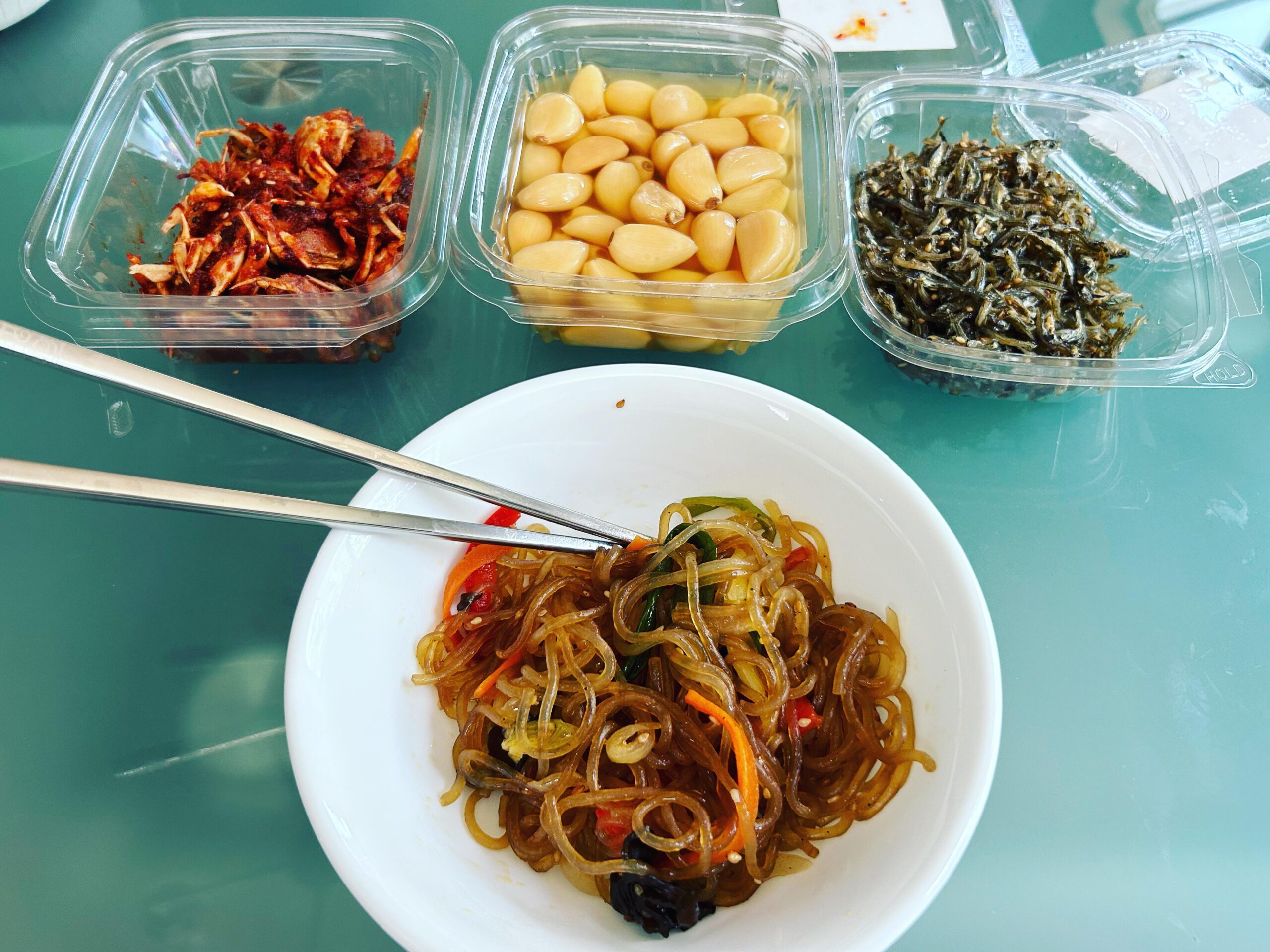 Mini crab side dish, pickled garlic side dish, anchovy side dish & japchae!by nizzerp Write A CommentYou must be logged in to post a comment.