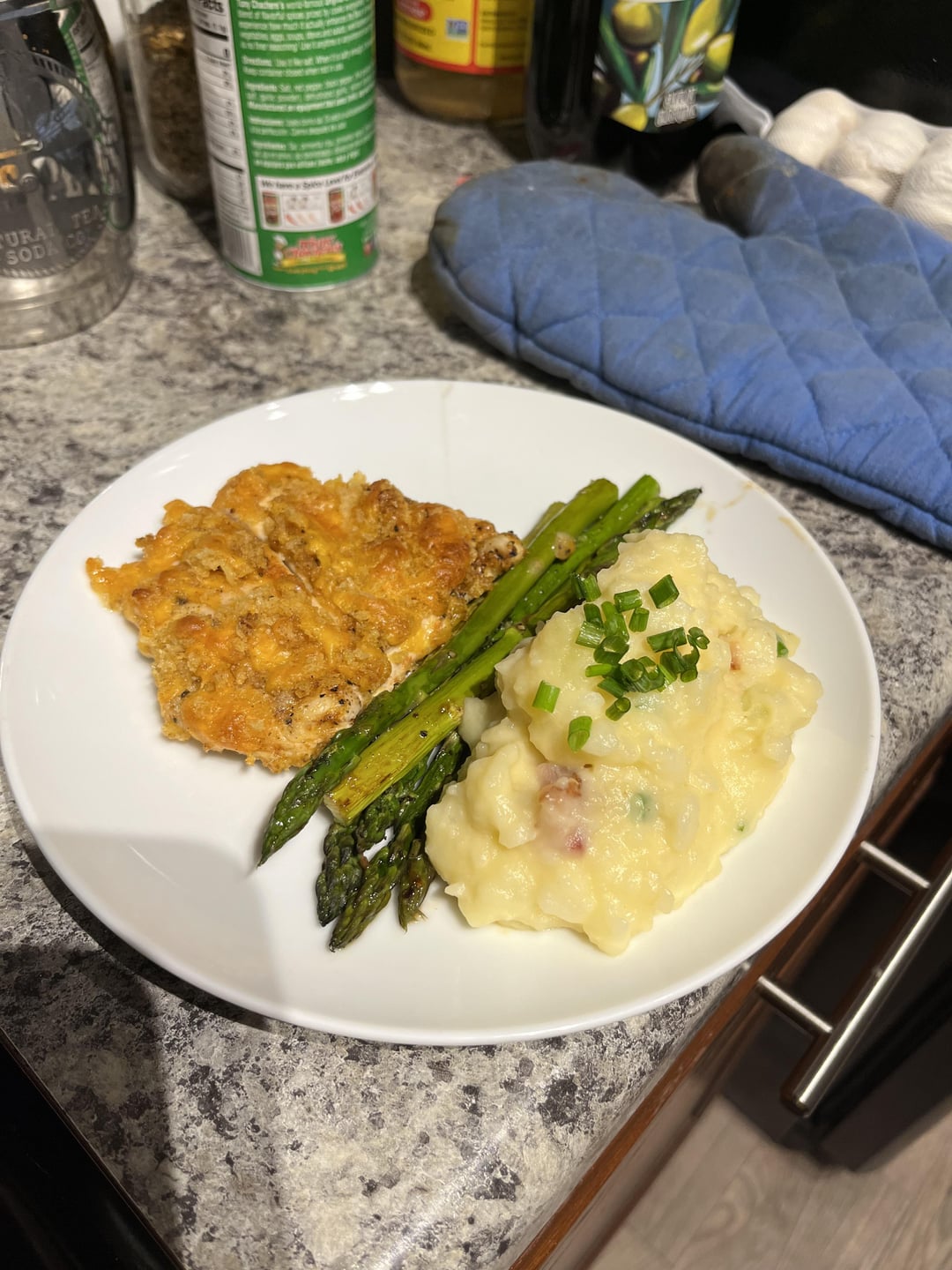 Cheddar Chicken with Roasted Asparagus & Loaded Mashed Potatoesby mistuhvuvu Write A CommentYou must be logged in to post a comment.