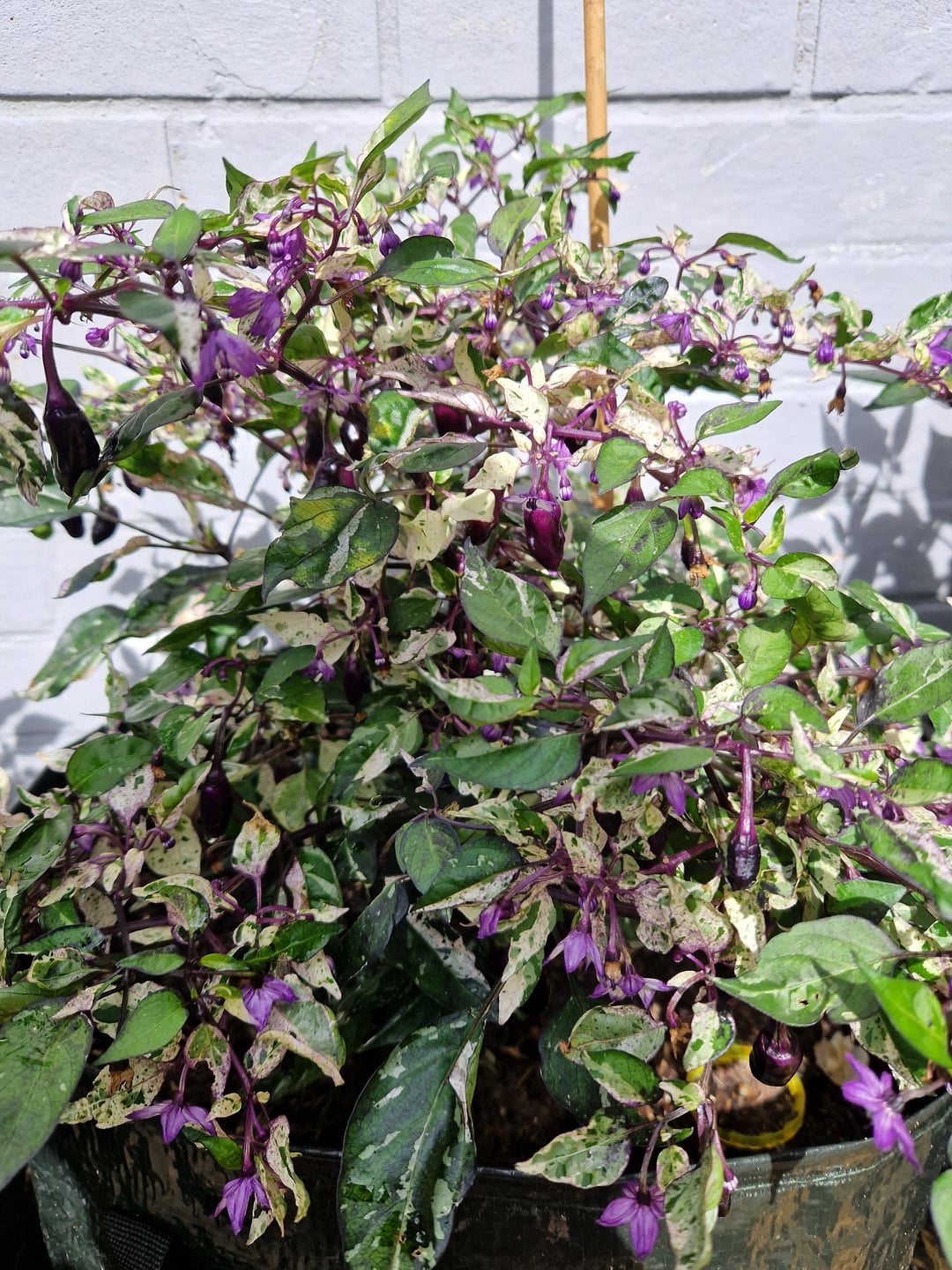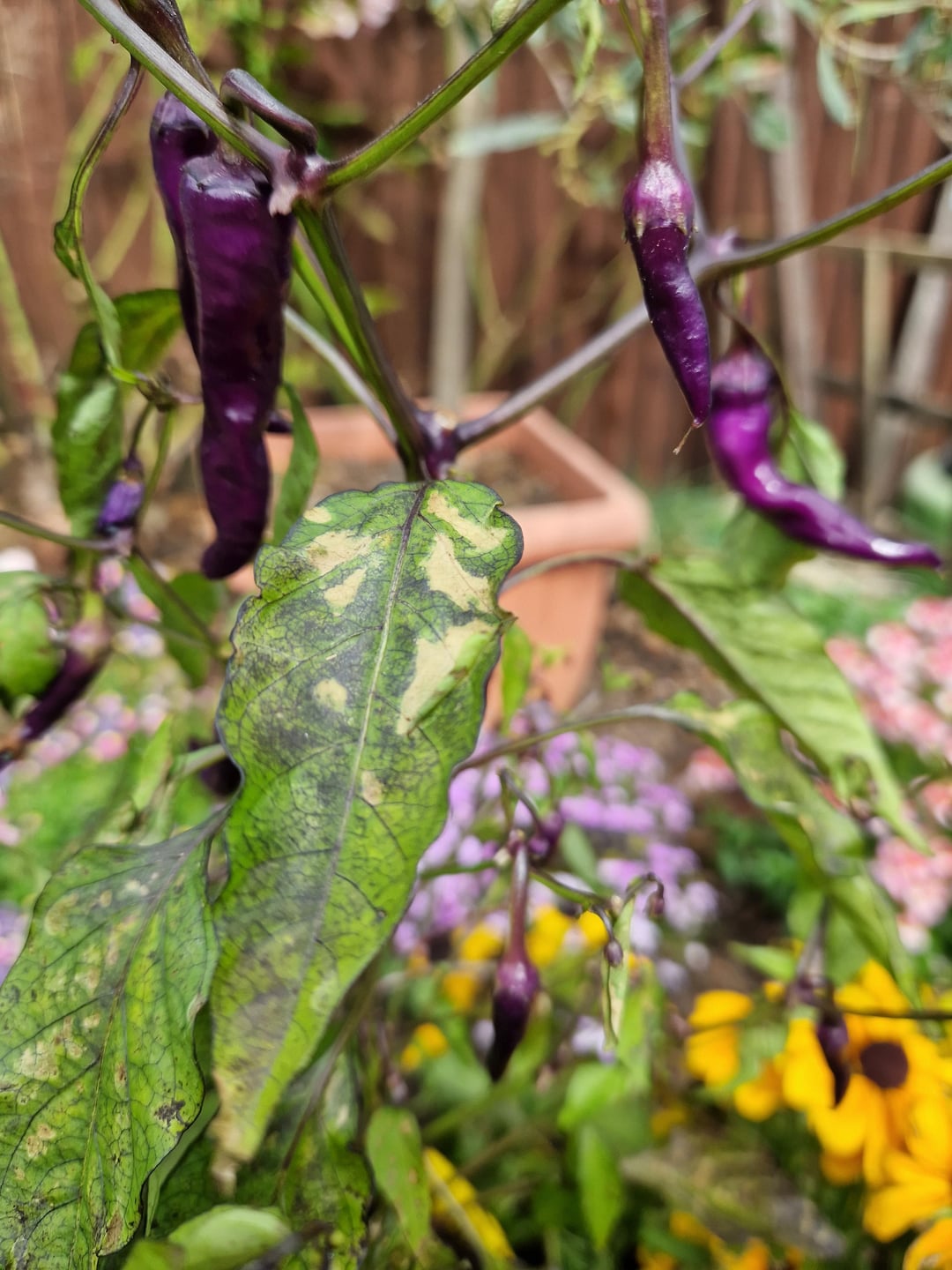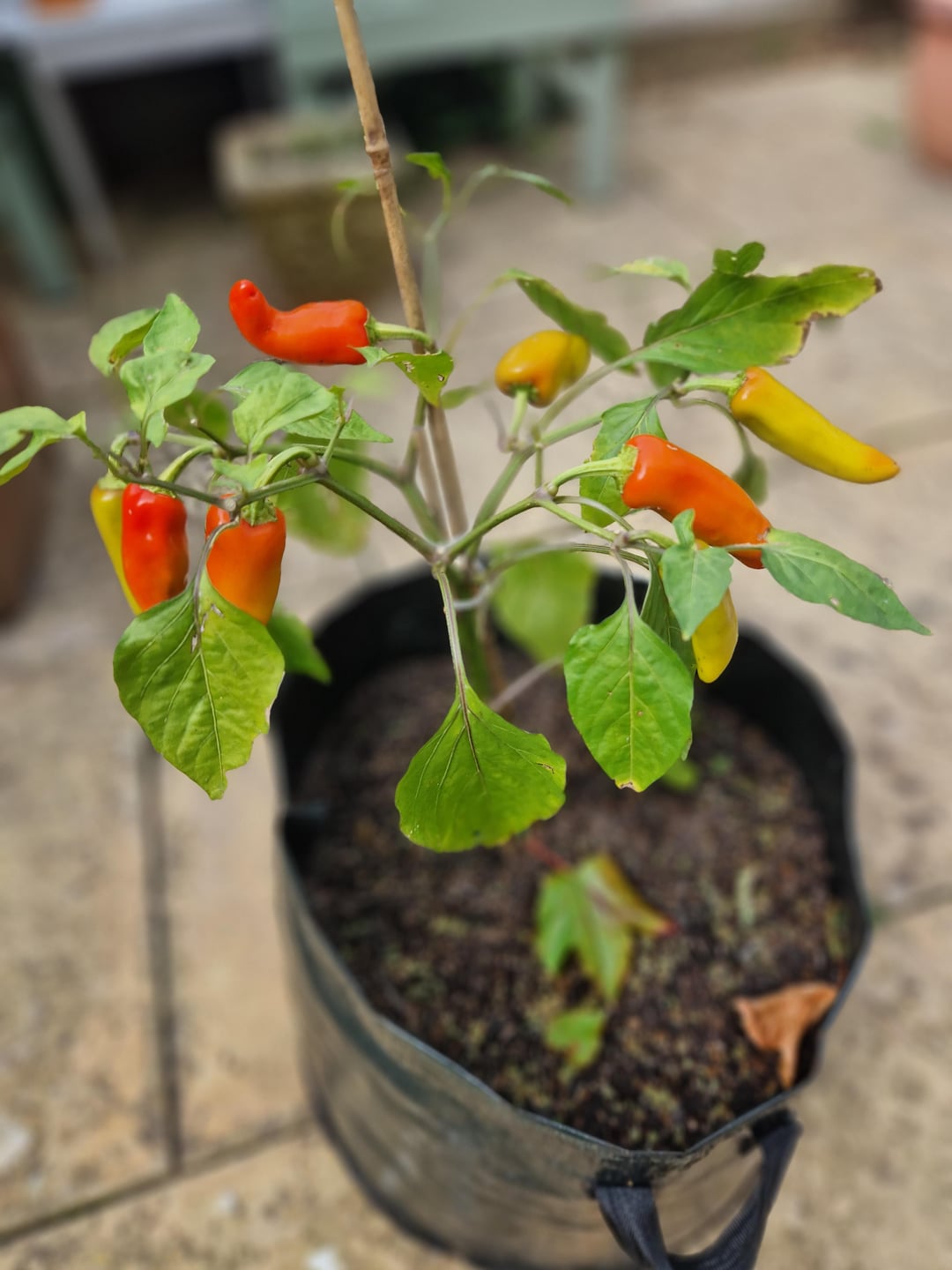 From left to right: Hungarian hot wax, Peach Reaper, Buena Mulata, Scotch Bonnet, Jigsaw pepper, last two are both Royal Black