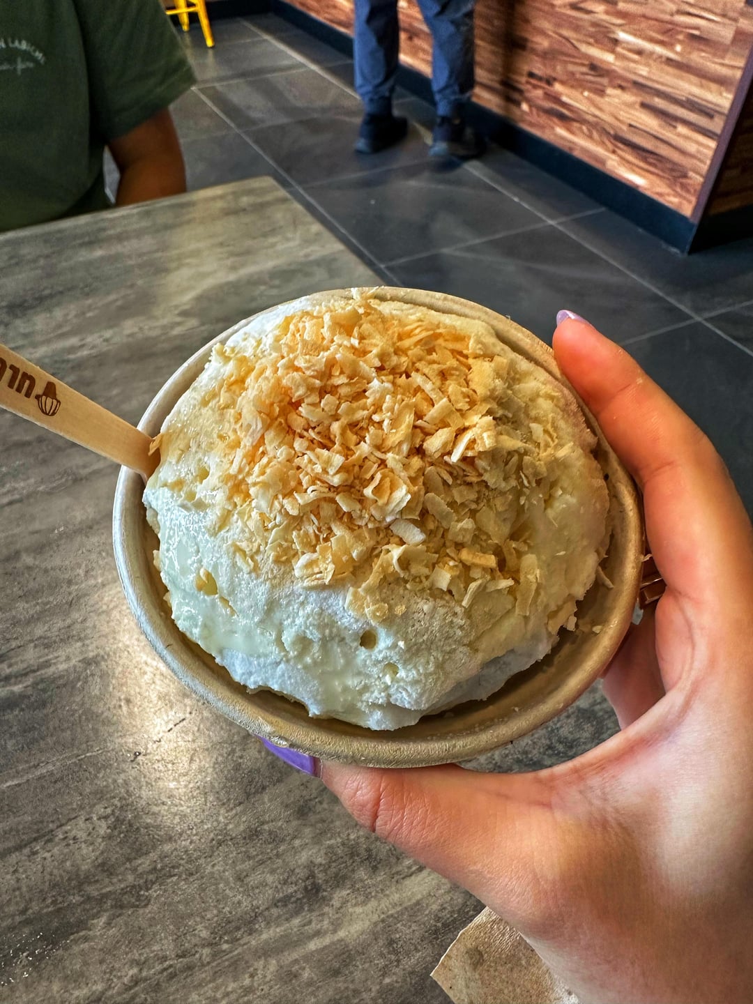 My fave is the Haleakala with macadamia nut icecream . I also liked adding mochi to the shave ice. 6.25 for small (pictured) and 7.50 for a normal sized one. they’re opened 12-8, the original owner is in town for 2 weeks. They are a super famous spot from Maui and this is their 3rd location outside of Hawaii. 4500 E Palm Valley Blvd Unit 116, Round Rock, TX 78665