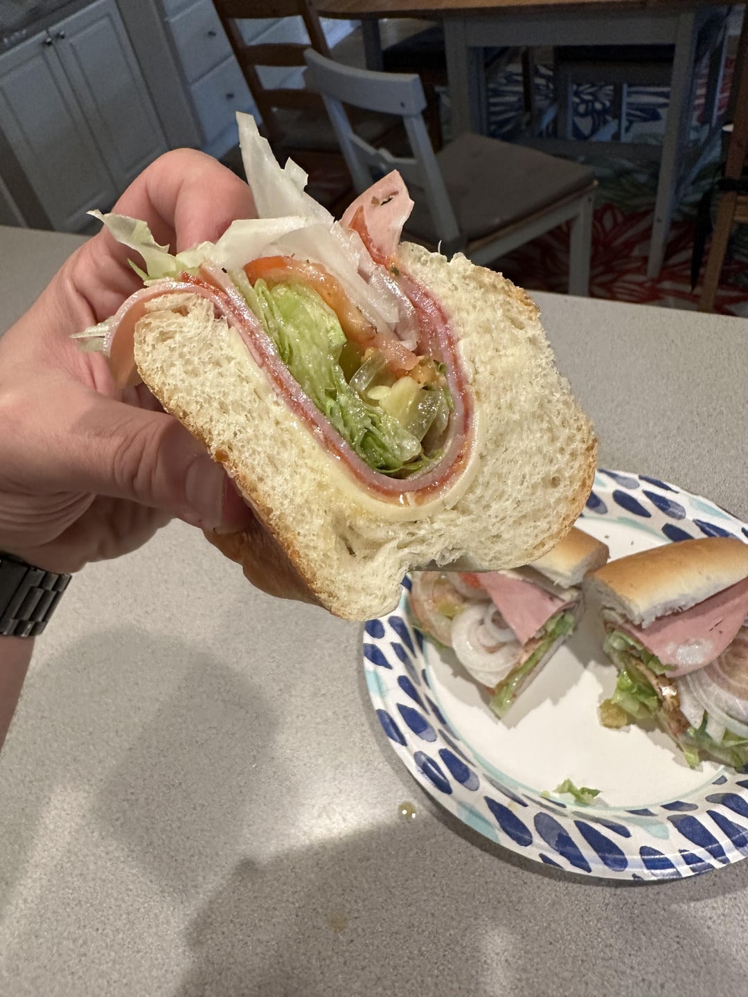 Italian sub with all local Italian market ingredients on a freshly made bun