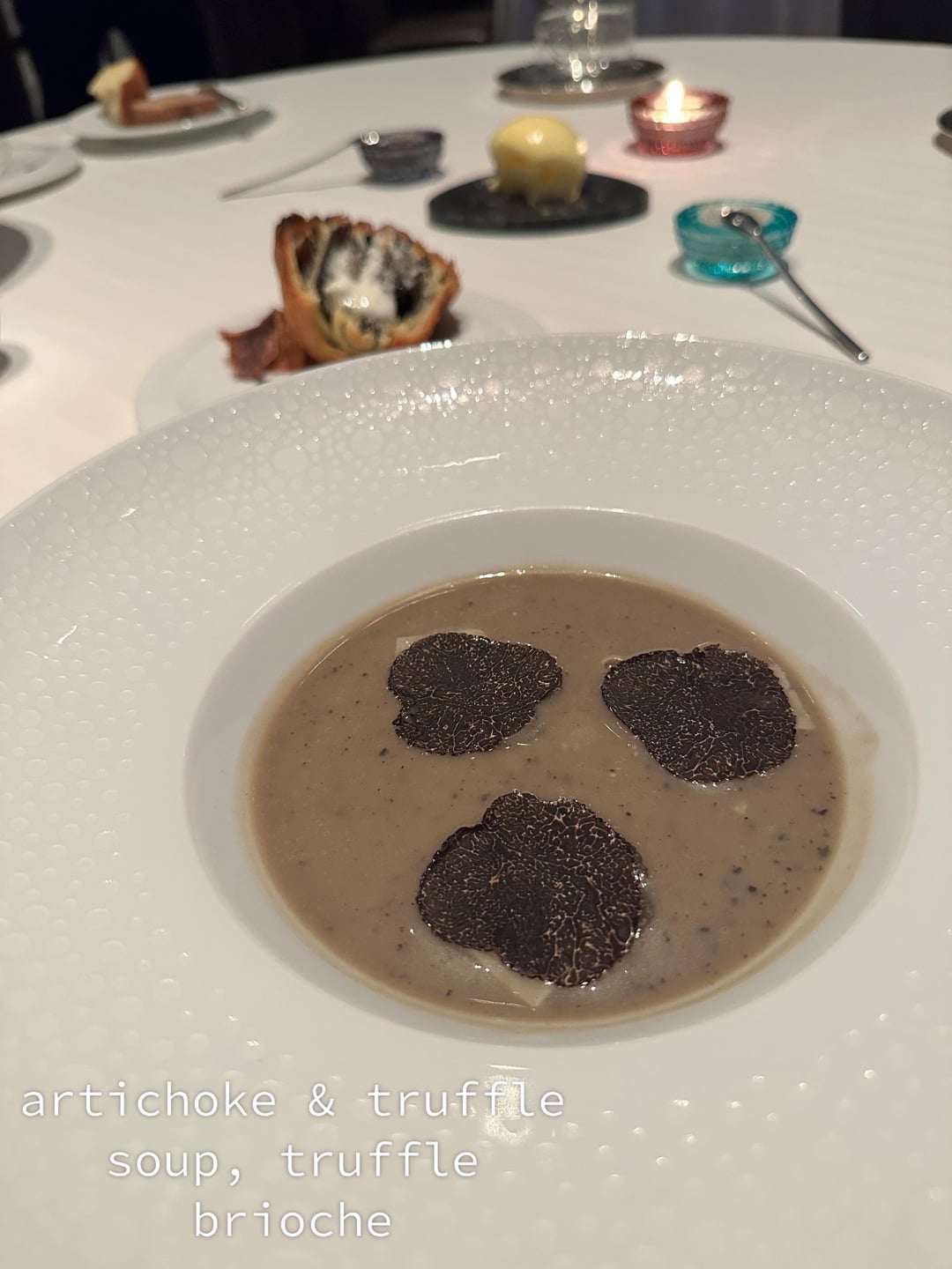 \-artichoke and truffle soup is extremely rich, this was definitely the turning point of the meal for us. Very filling, and served with a buttered truffle brioche to dip which didn’t help lighten anything (but was the best bread of the night)