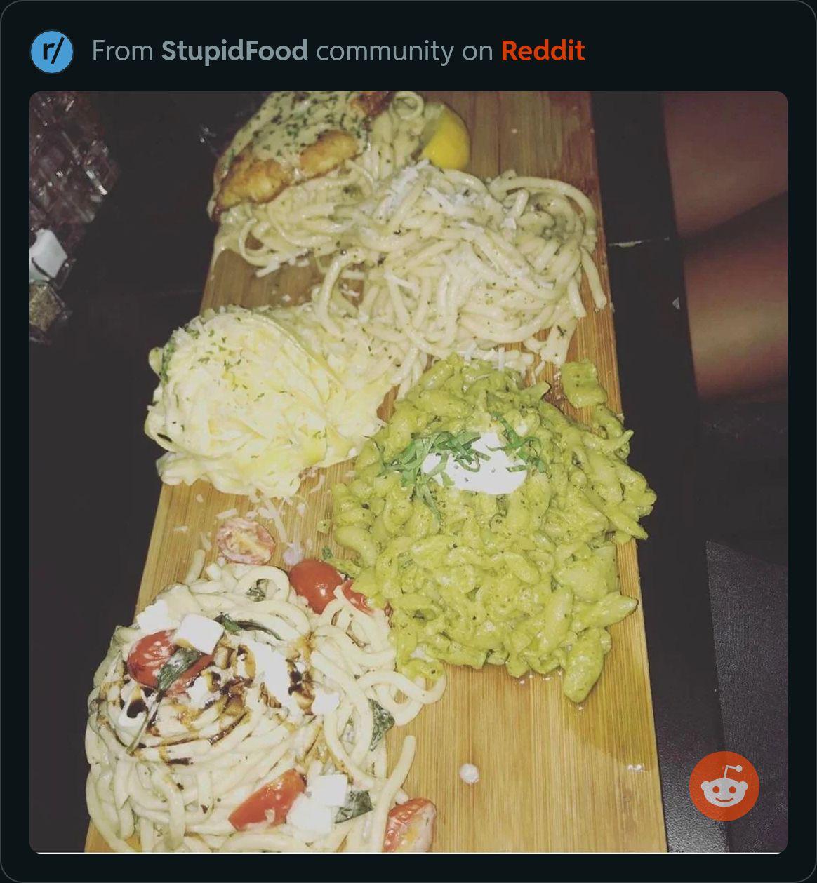 And for you sir, the barf sampler. Chef had pasta for lunch. Enjoy.