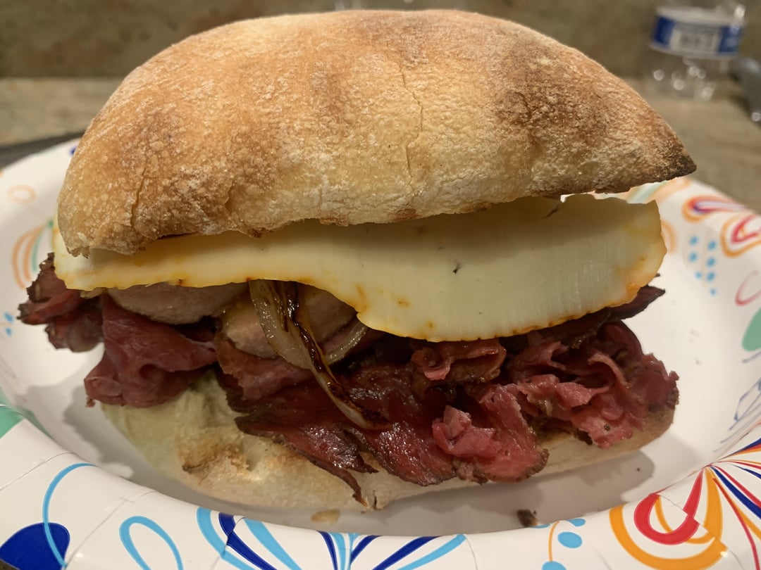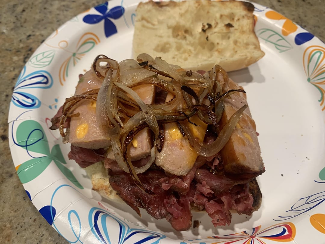 Pastrami, jalapeño cheddar sausage with carmelized onions and muenster cheese + hot sauce by Punch_Your_Facehole 1 Comment rattlehead44 2 years ago Damn, that looks amazingWrite A CommentYou must be logged in to post a comment.