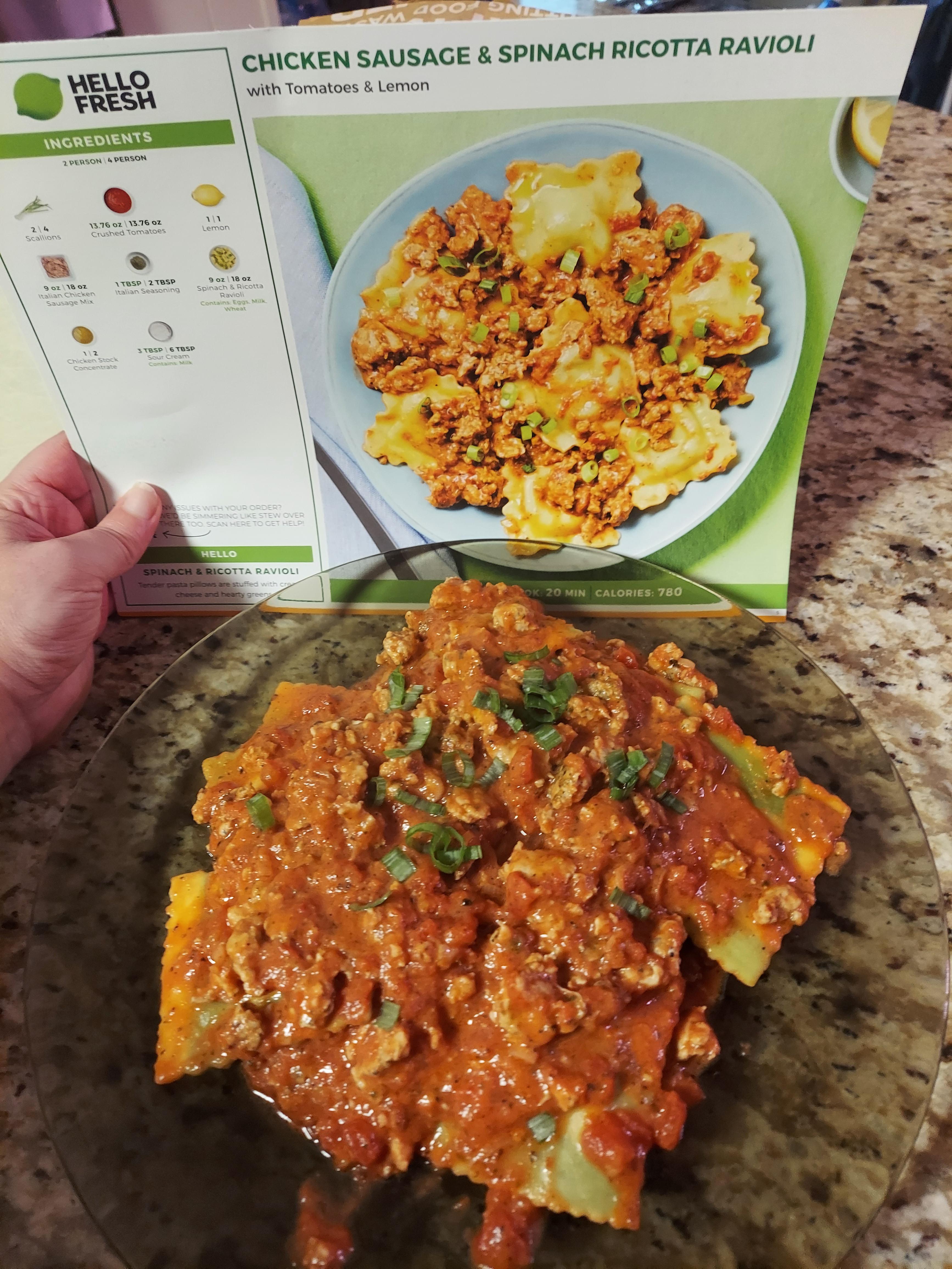 Chicken sausage and spinach ricotta ravioli was very good! by MissWestSeattle 3 Comments ImPerfectlyKateable 3 years ago Mine didn’t seem to have as much sauce, but it was amazing! SerDuckOfPNW 3 years ago I made this last night. I thought my kids would complain for sure (picky eaters), but it was a hit! BananaPeelSlippers 3 years ago Yours looks better than the picture on the recipe cardWrite A CommentYou must be logged in to post a comment.