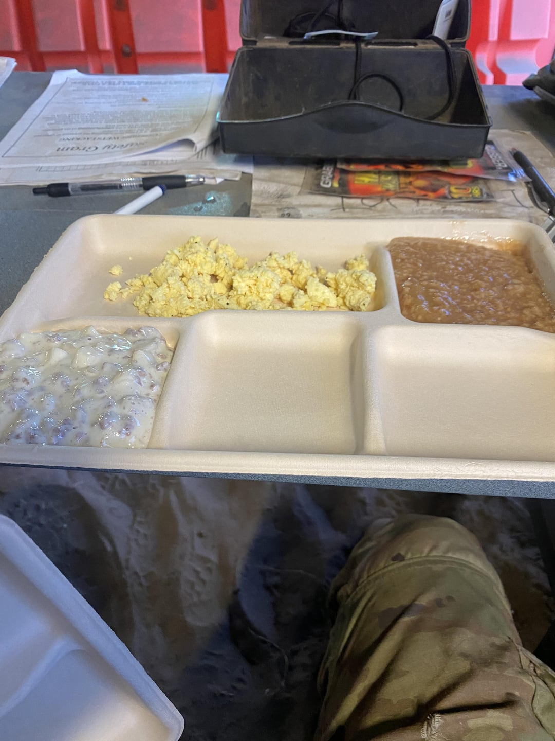 That’s good for a field meal. You’re lucky you’re getting hot meals at all.