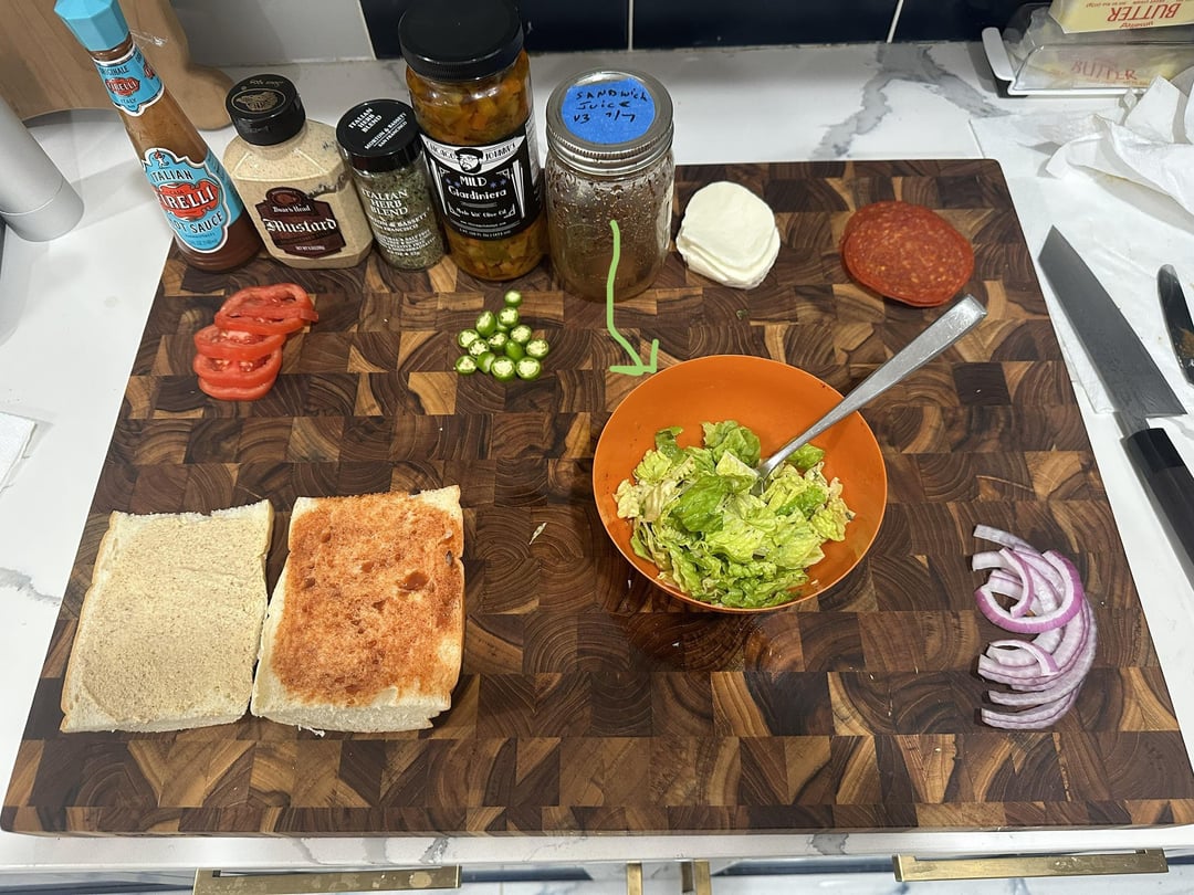 i accidentally bought mild giardiniera so i grabbed some serranos from the garden. tomato is from the garden too.