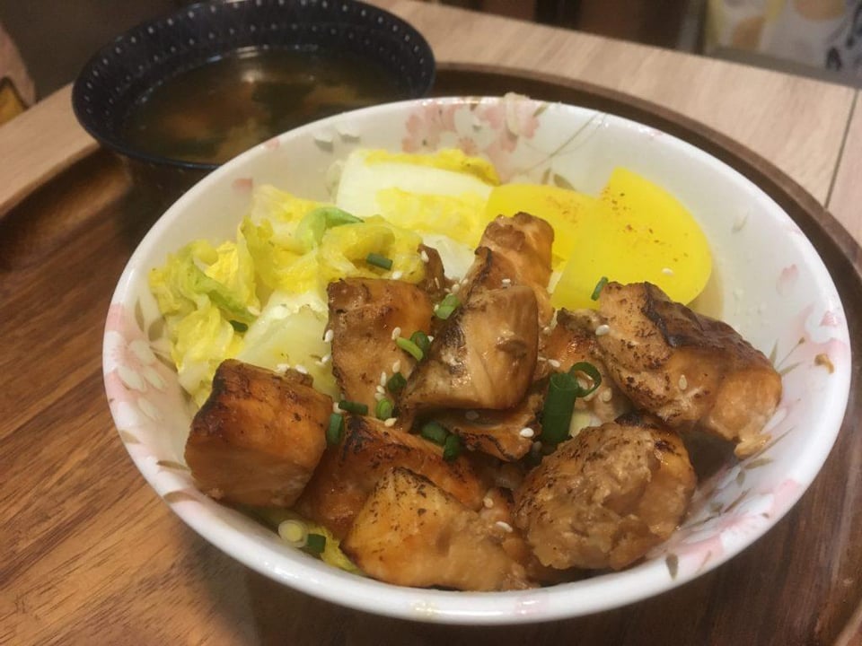 Full recipe: [https://servedwithrice.com/weeknight-salmon-teriyaki-rice-bowl/](https://servedwithrice.com/weeknight-salmon-teriyaki-rice-bowl/)