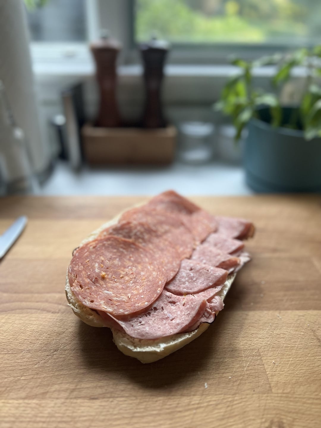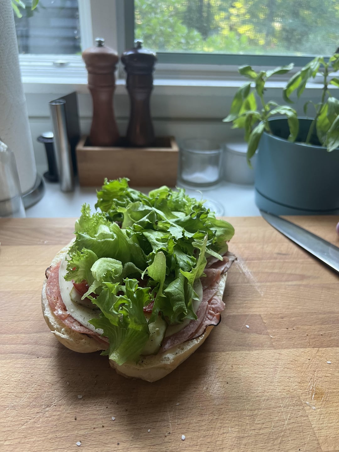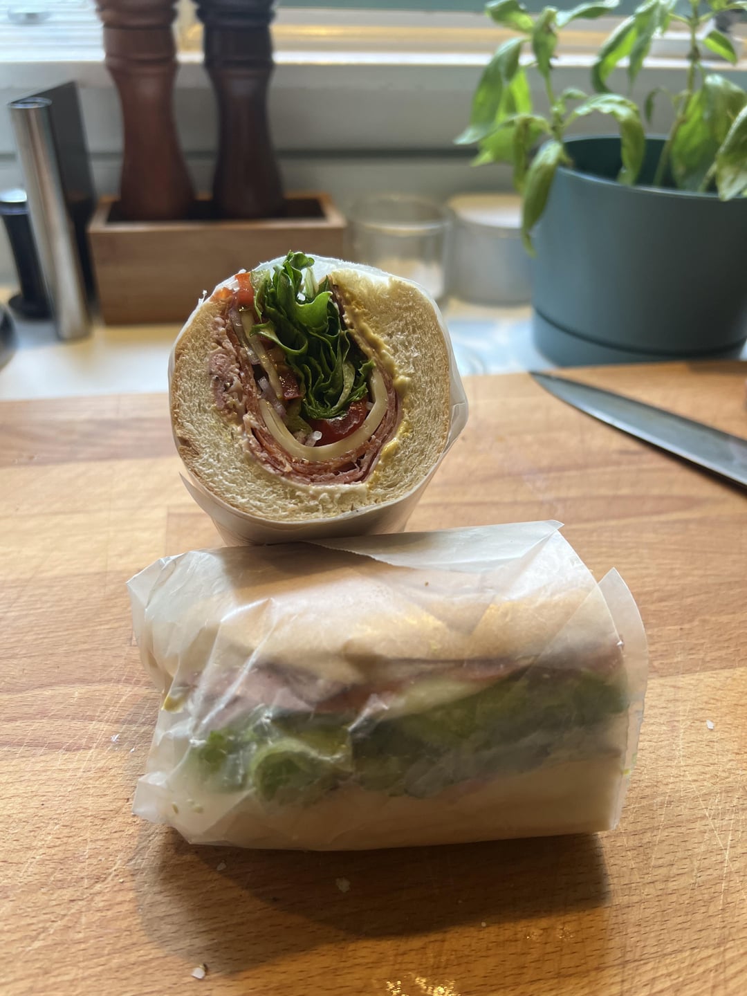 Ham, Dilusso Genoa, Soppressata, and Provolone with some onion, pickles, and tomato, coarse salt and black pepper, and some lettuce and vinegar.by reforminded 1 Comment GreenManTenTon 2 years ago That broads got it too good.Write A CommentYou must be logged in to post a comment.